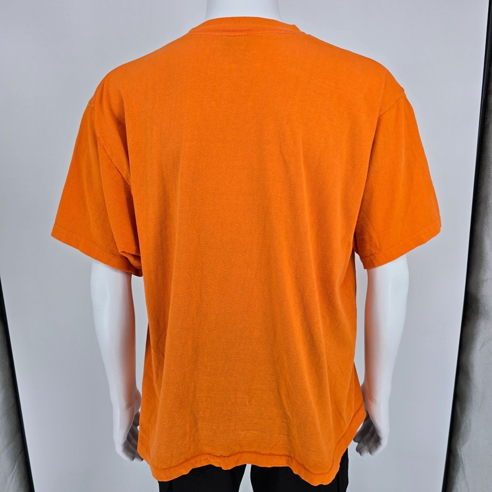 Vintage 1990s Orange Scarecrow & Pumpkin Fall/Halloween Pocket T-Shirt (XL/XXL)