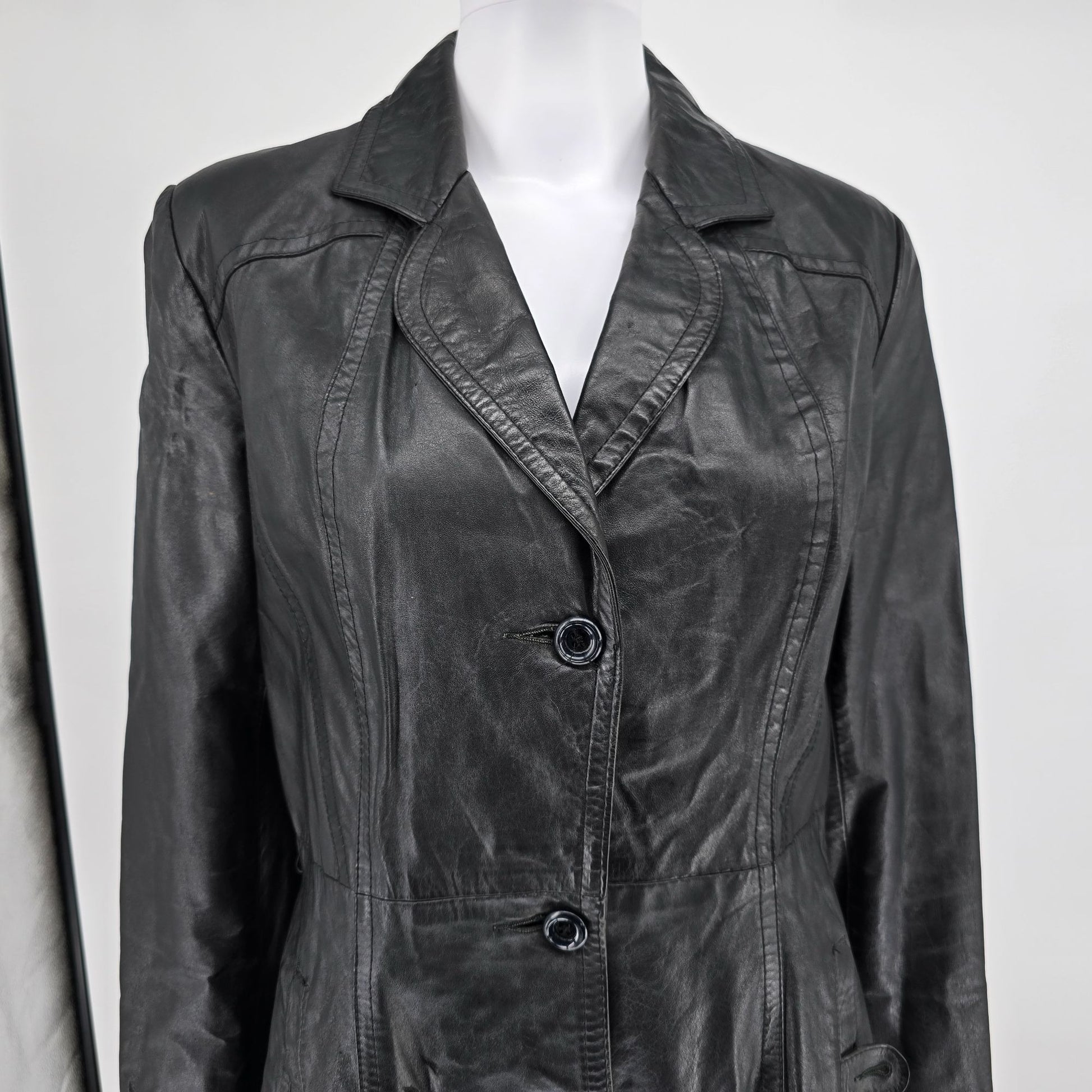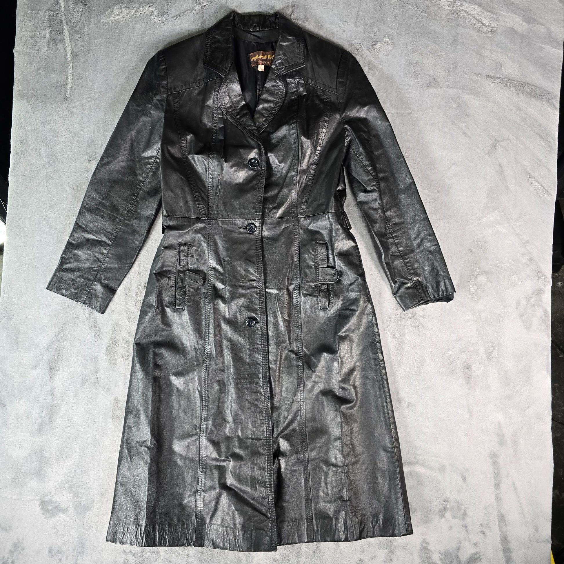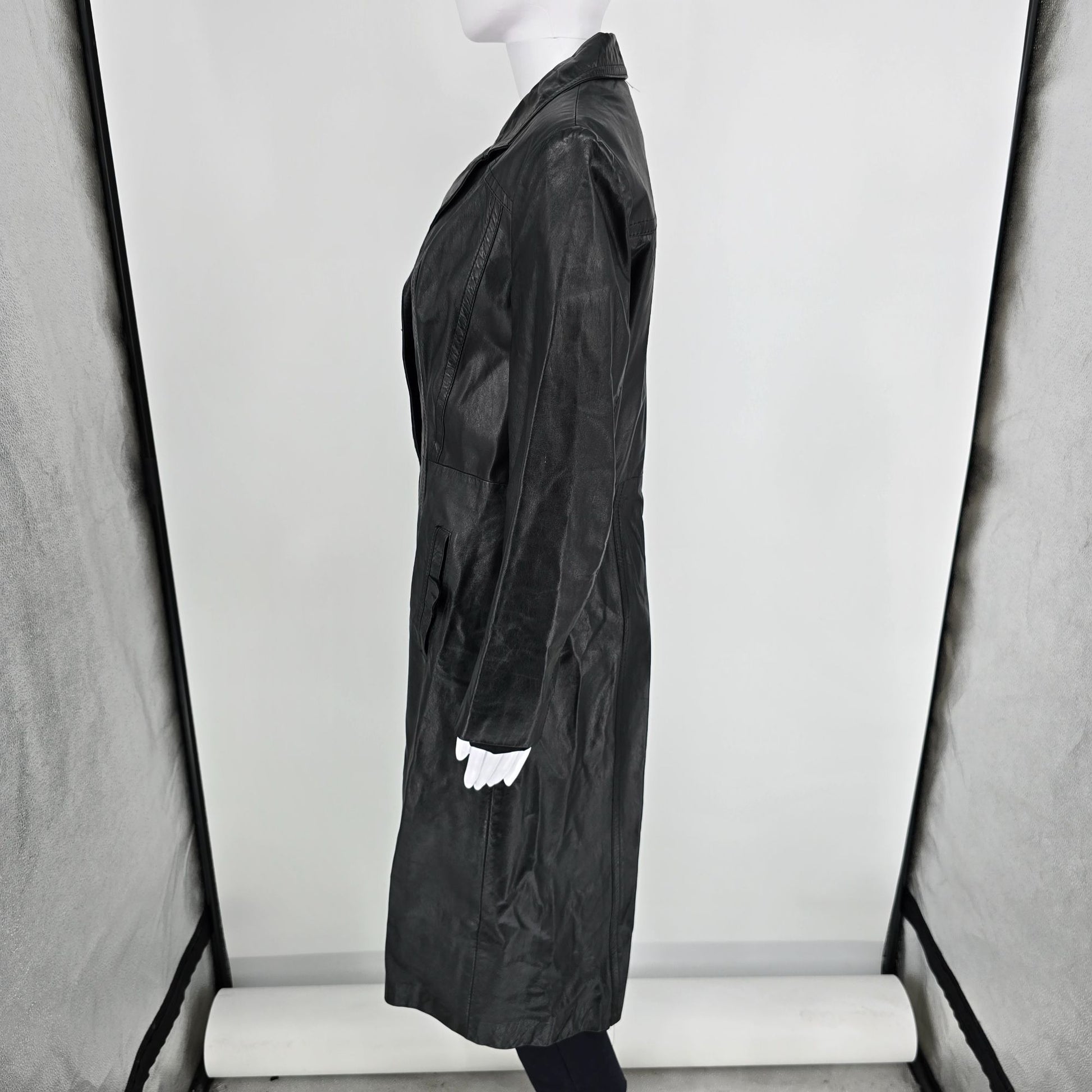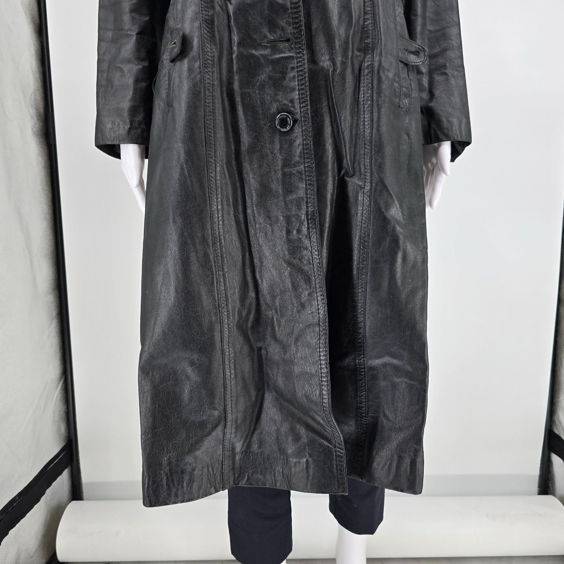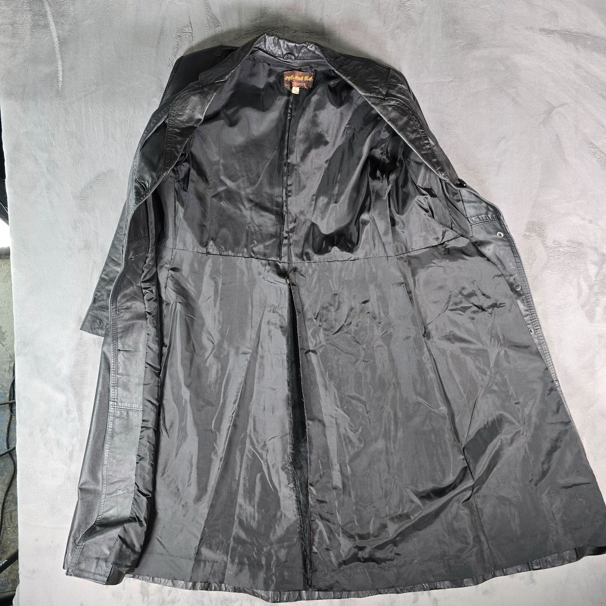 Vintage 1990s Split End Ltd. Single-Breasted Black Leather Trench Coat (M)