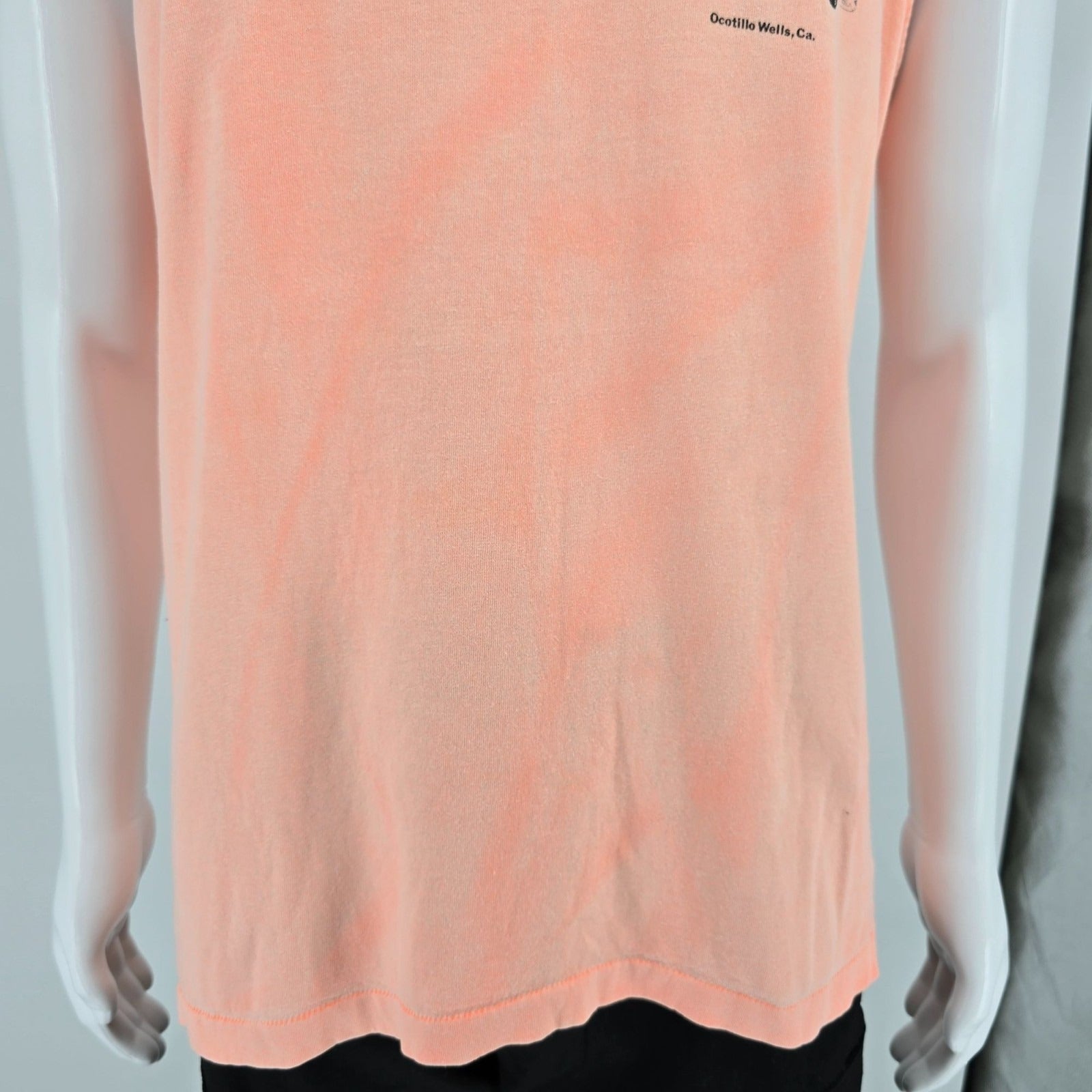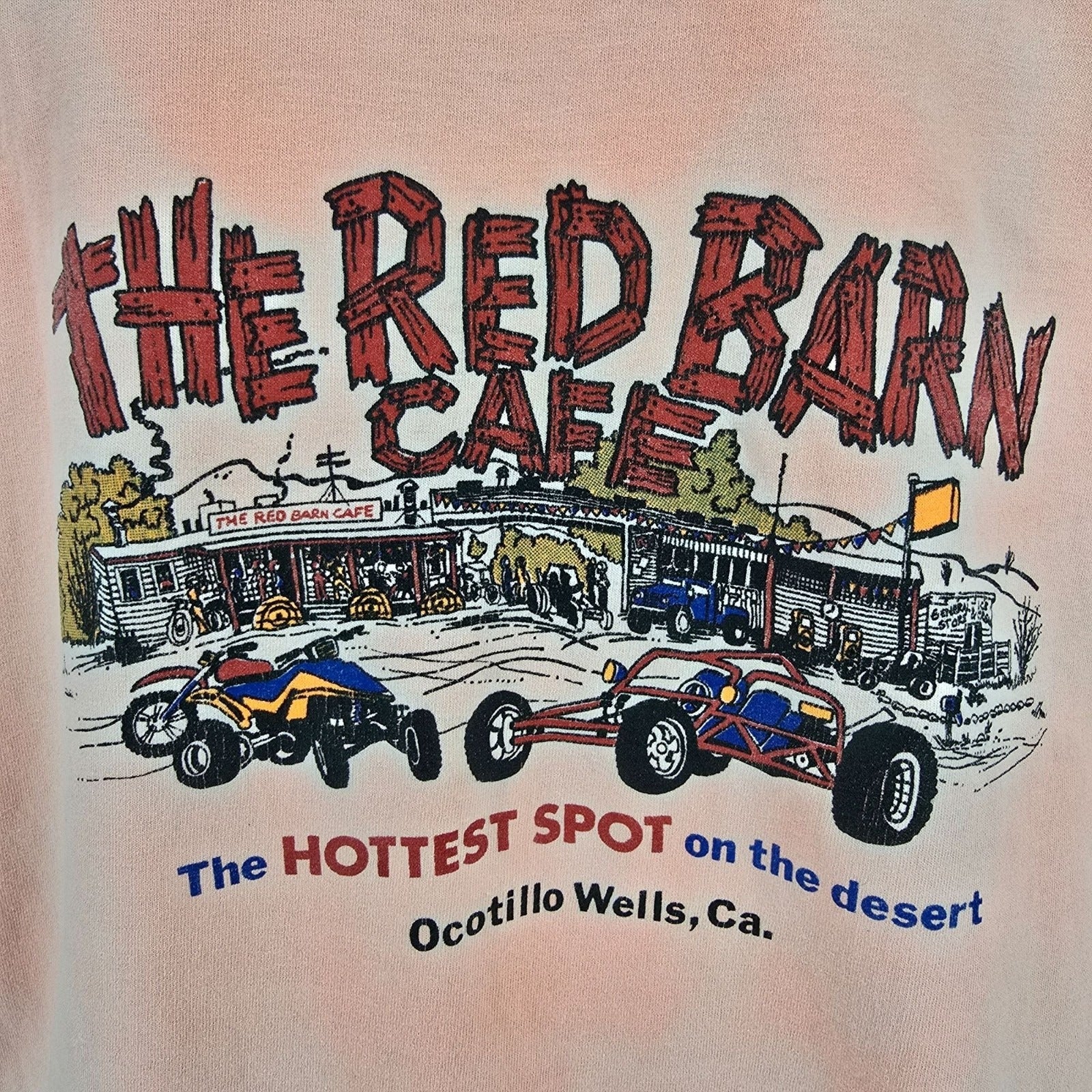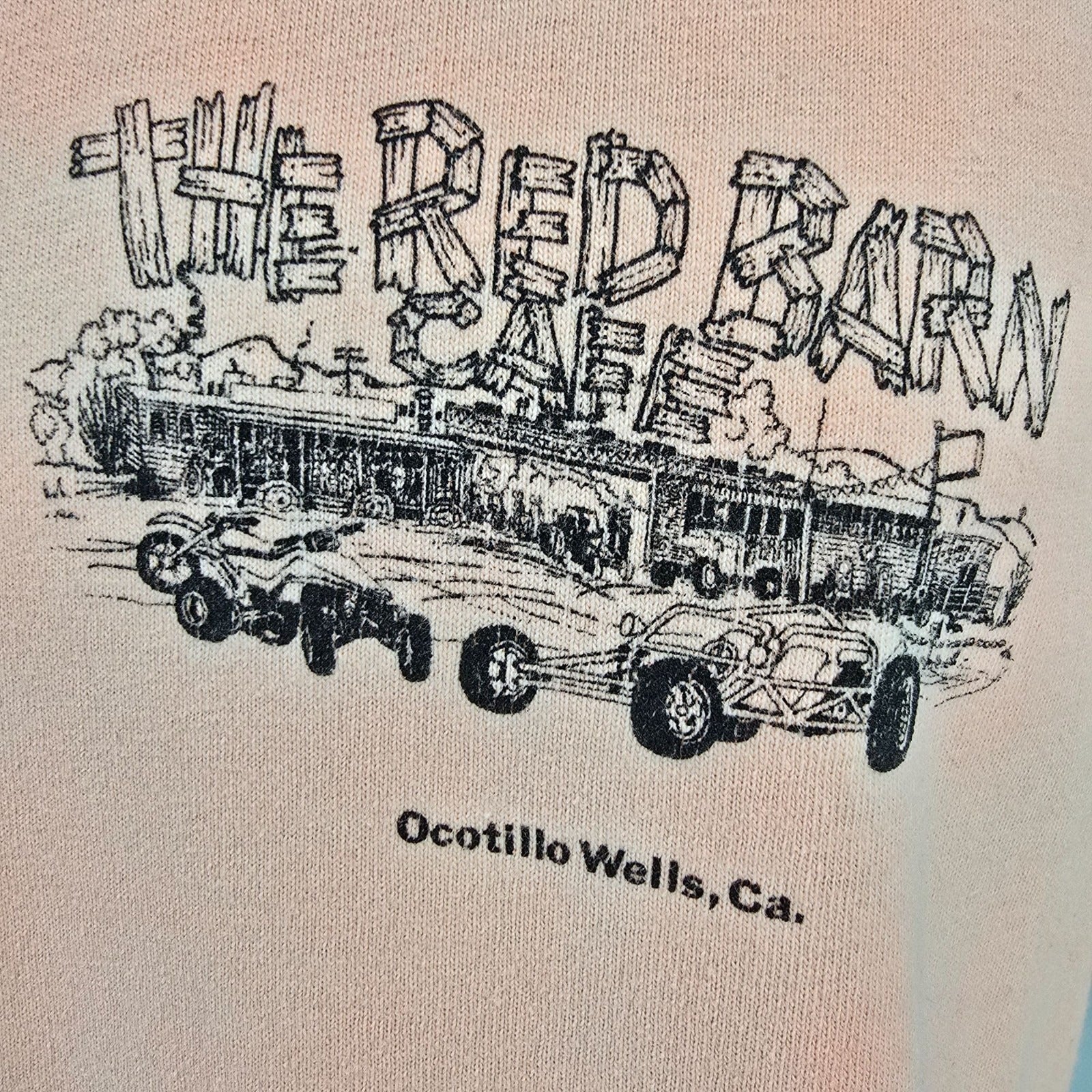 Notable Features: double stitch hem; off-road buggy graphics; advertising slogan on back stating "The Red Barn Cafe The HOTTEST SPOT on the desert"