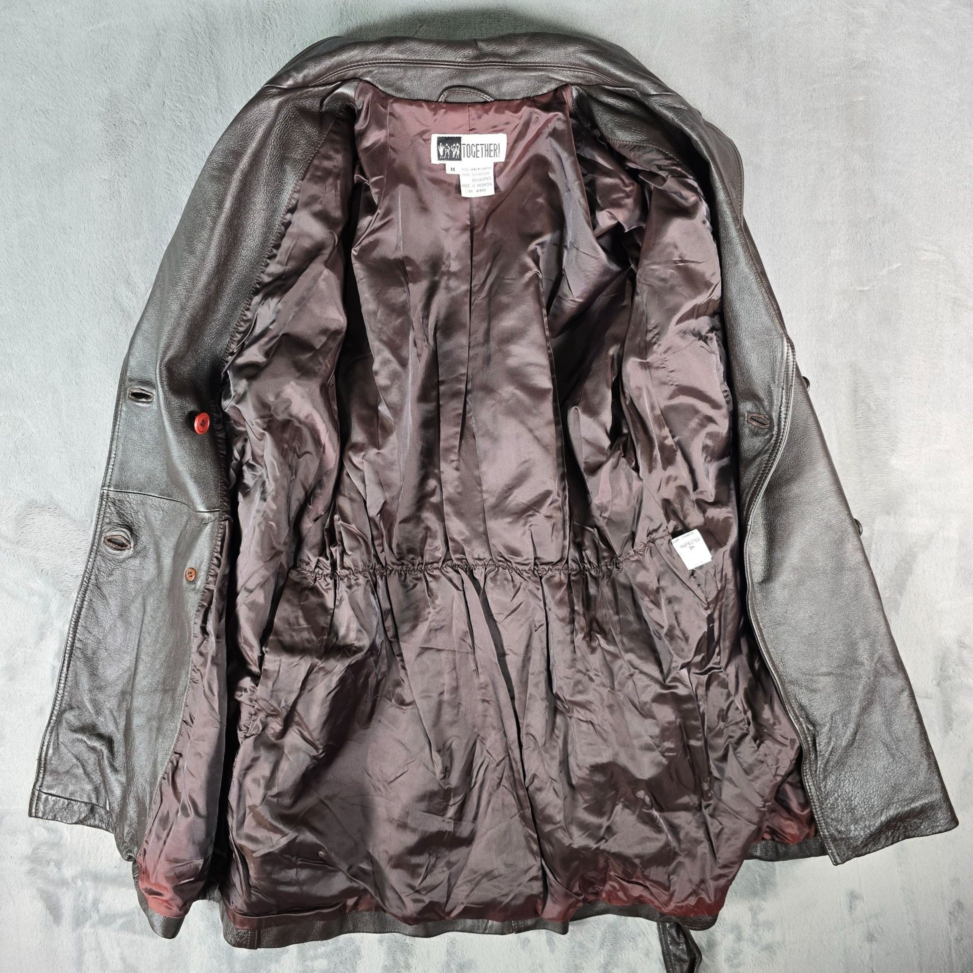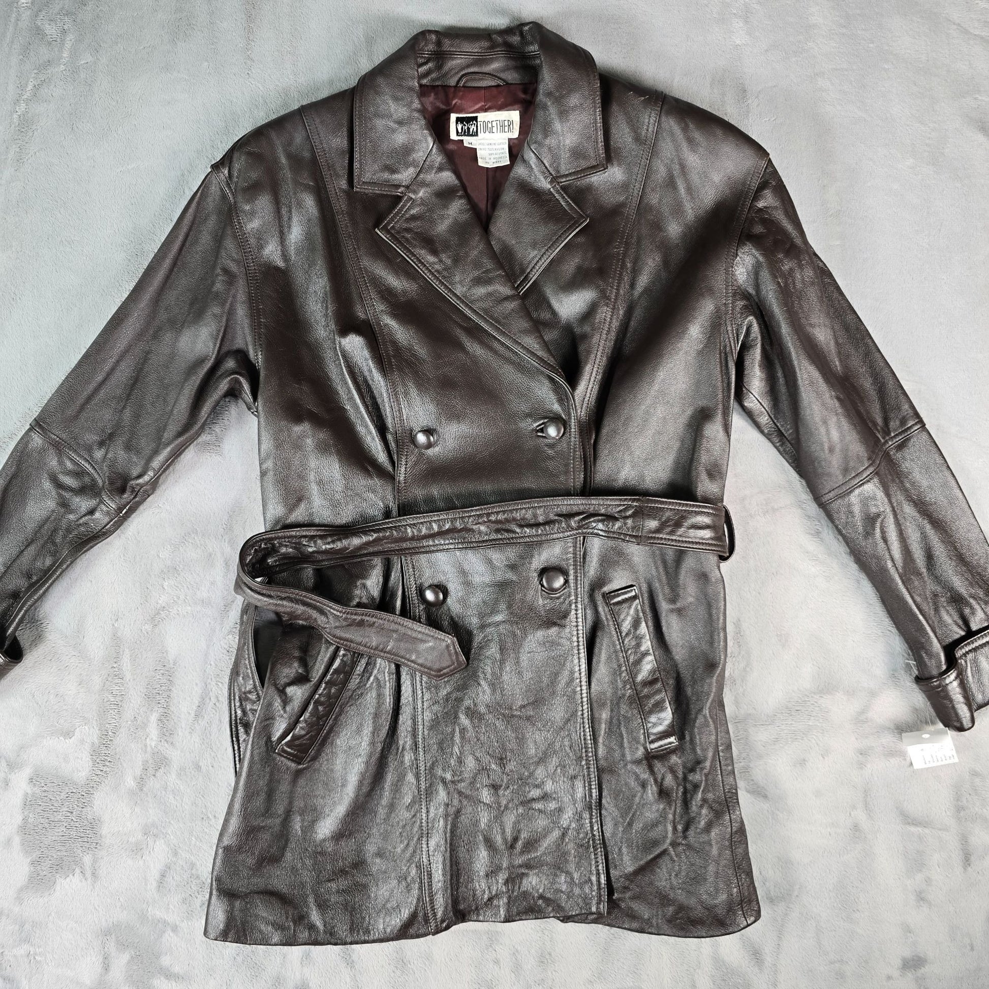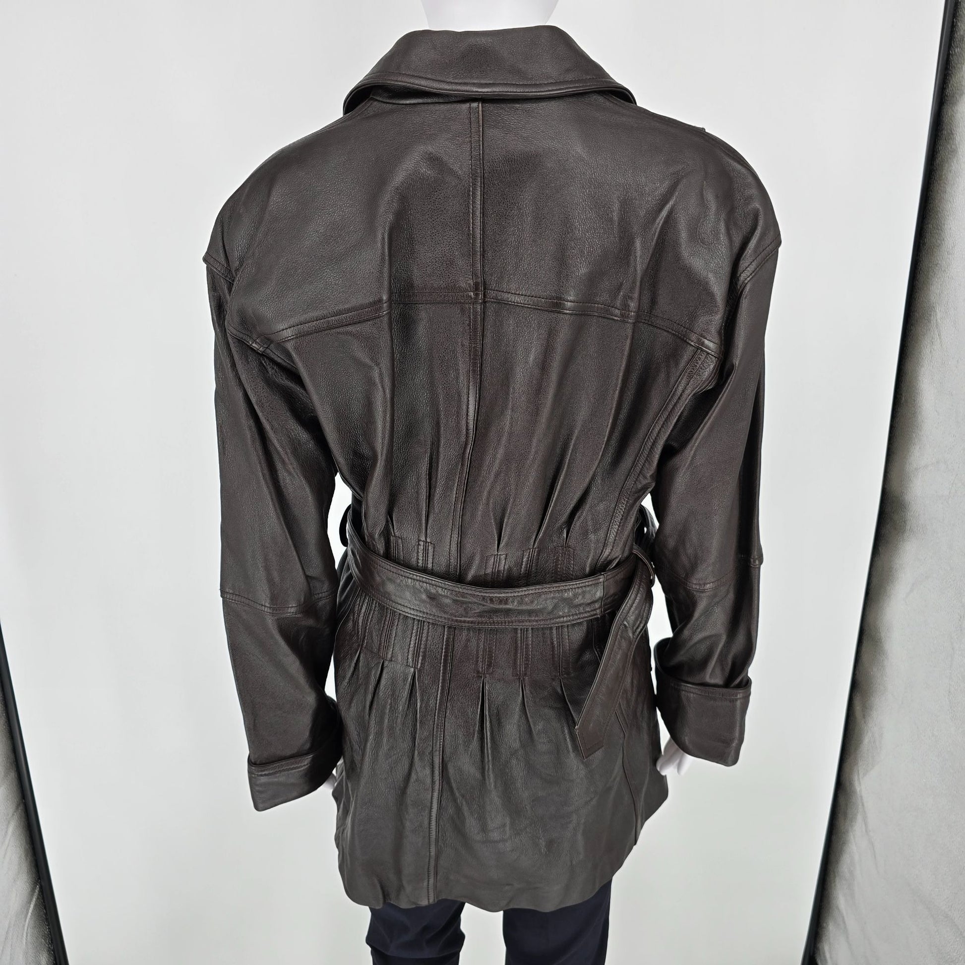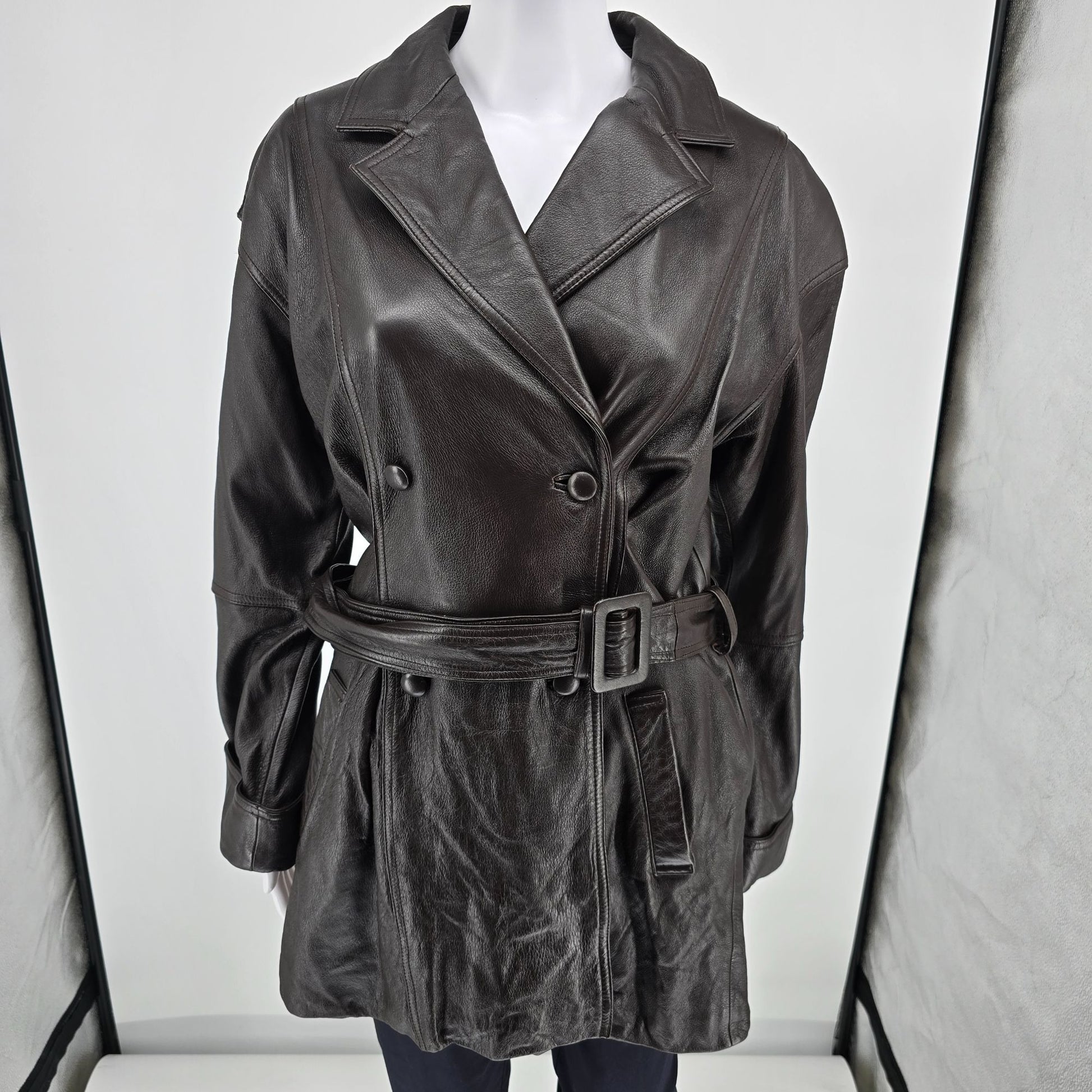 Vintage 1990s Together! Dark Brown Double-Breasted Belted Leather Trench Coat -M