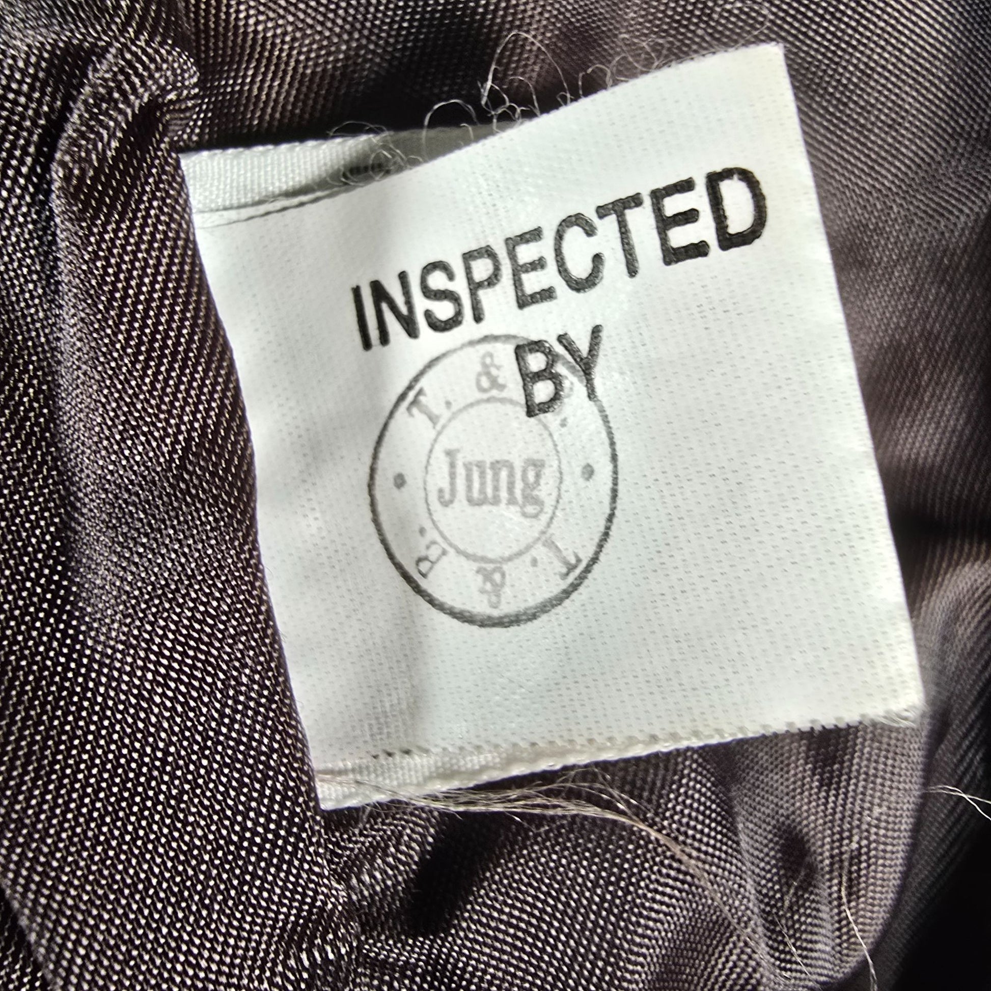 Notable Features: Double-breasted leather trench/car coat with matching belt and buckle; notched lapels