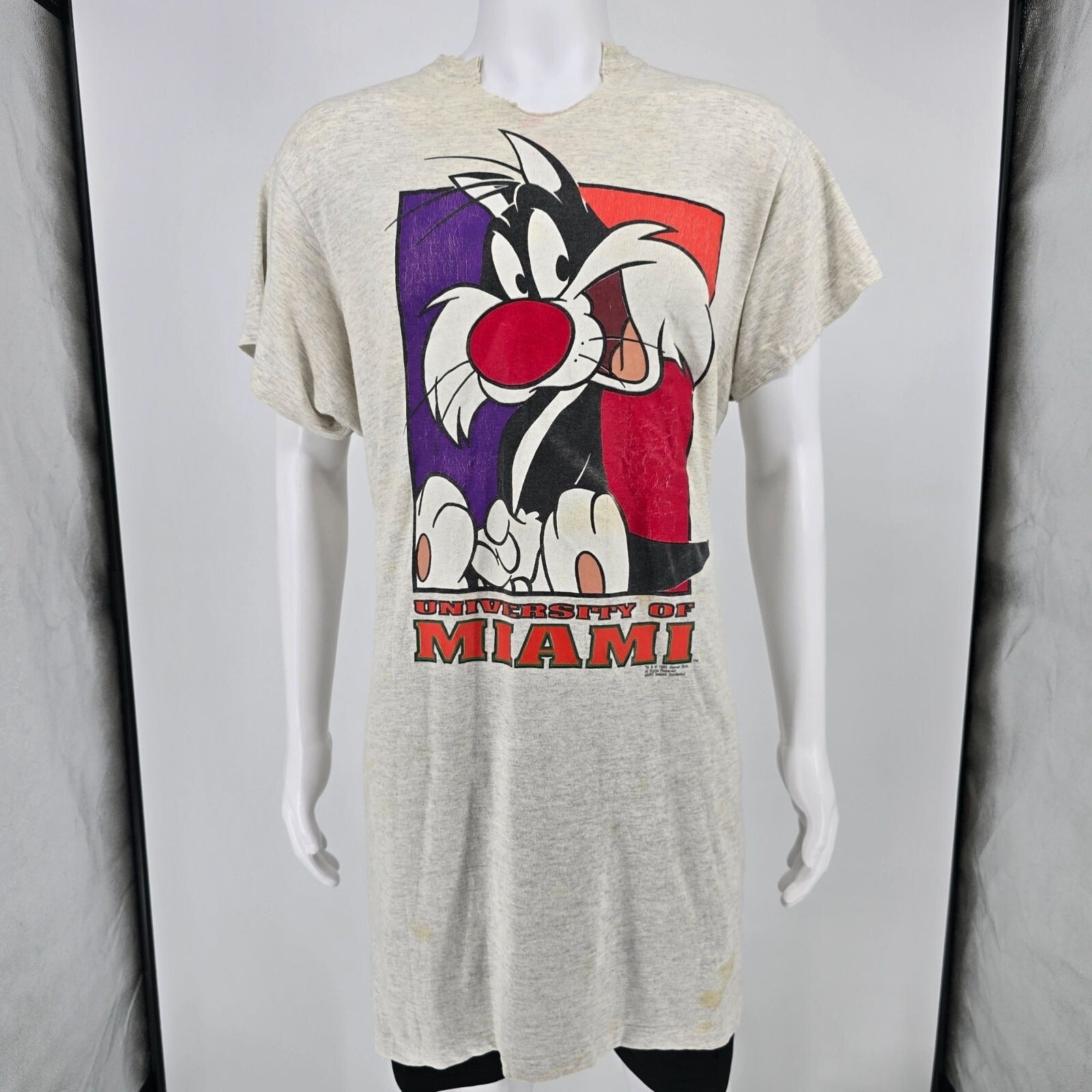 Vintage 1990s University of Miami Looney Tunes Sylvester T-Shirt (OSFA/XL)