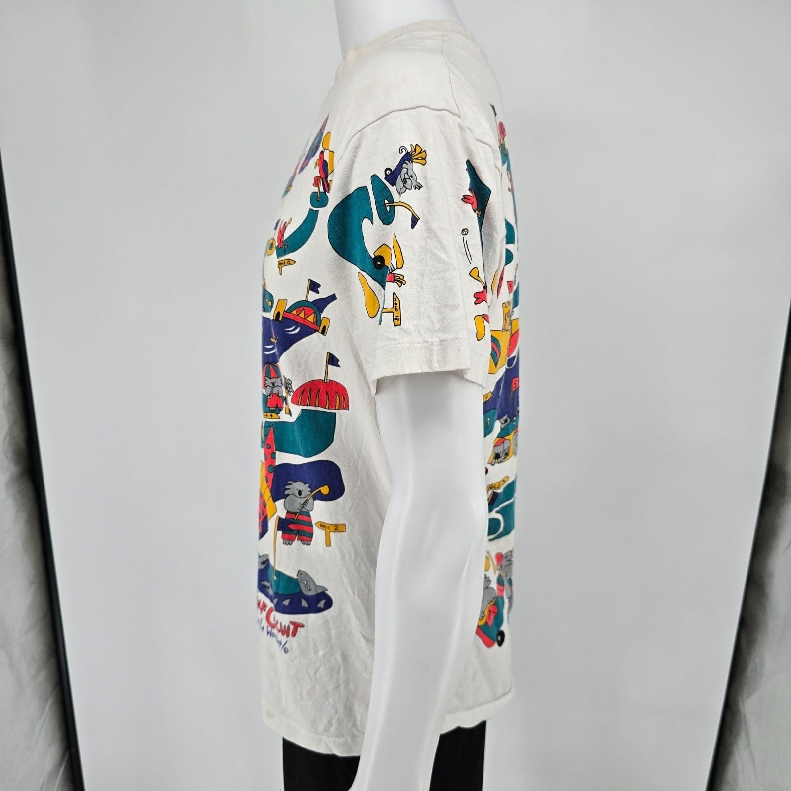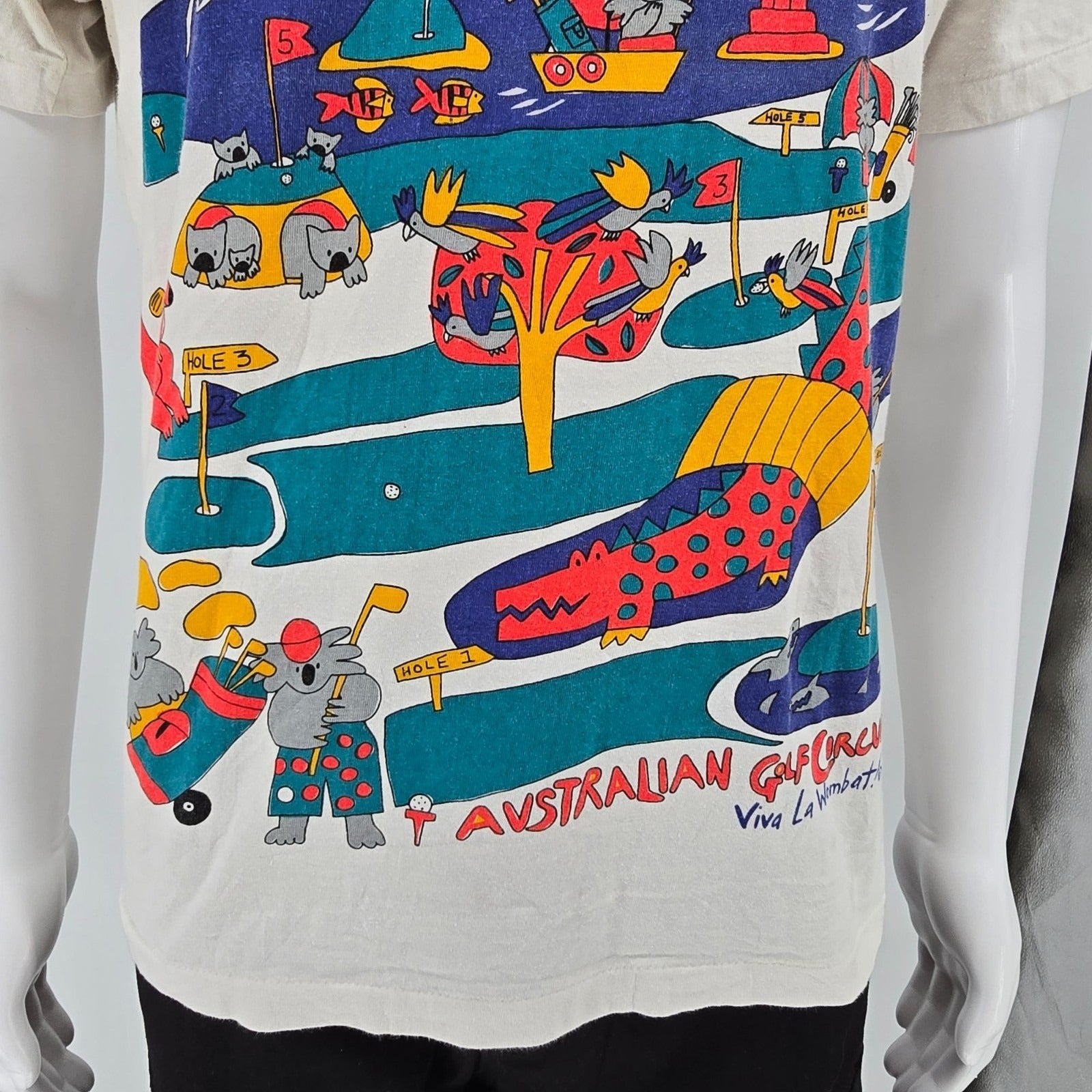 Vintage 1990s Viva La Wombat Australian Golf Circuit All Over Print T-Shirt (L)