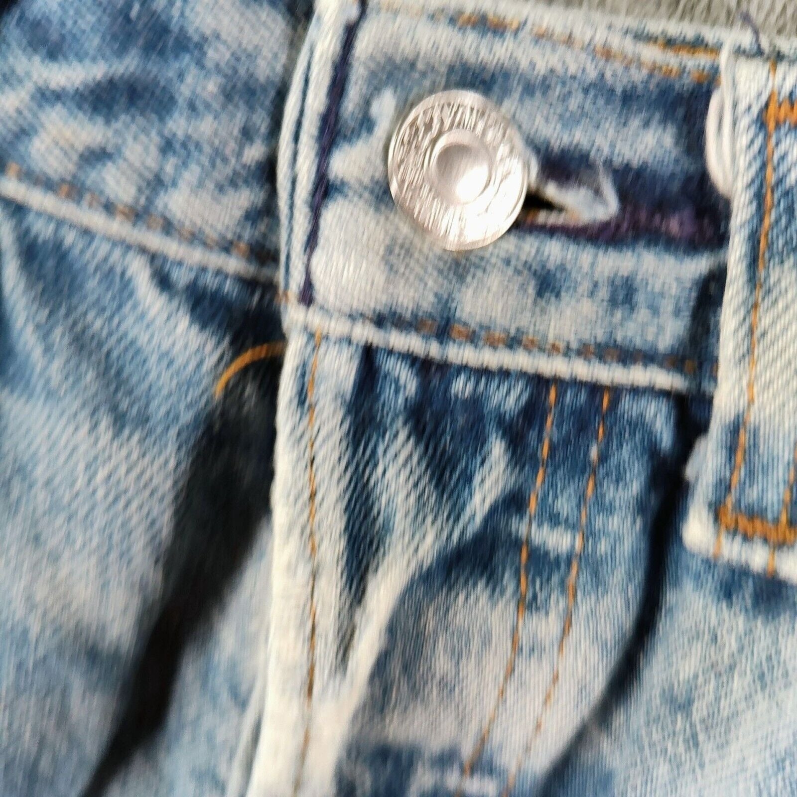 Condition Notes: Fair vintage DIY condition. DIY cutoff shorts with frayed hems and torn fabric on left leg. Distressing at back pockets and at the middle of the seam above the back pockets. Heavy wear to double horse back patch. Heavy wear and distressing at crotch seam. Gray horizontal marks near bottom of left leg. See photos.