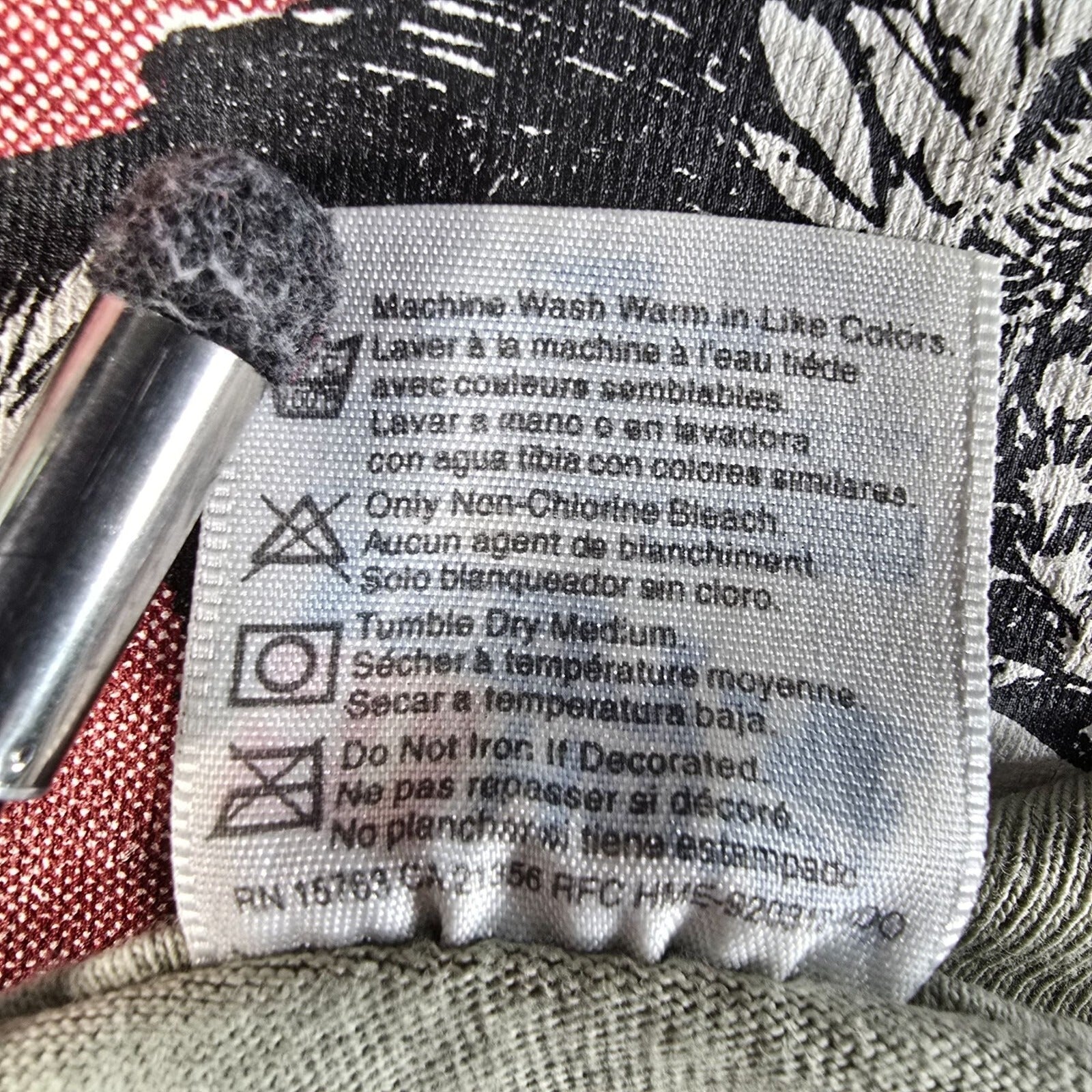Hole on front to right of chest graphic.