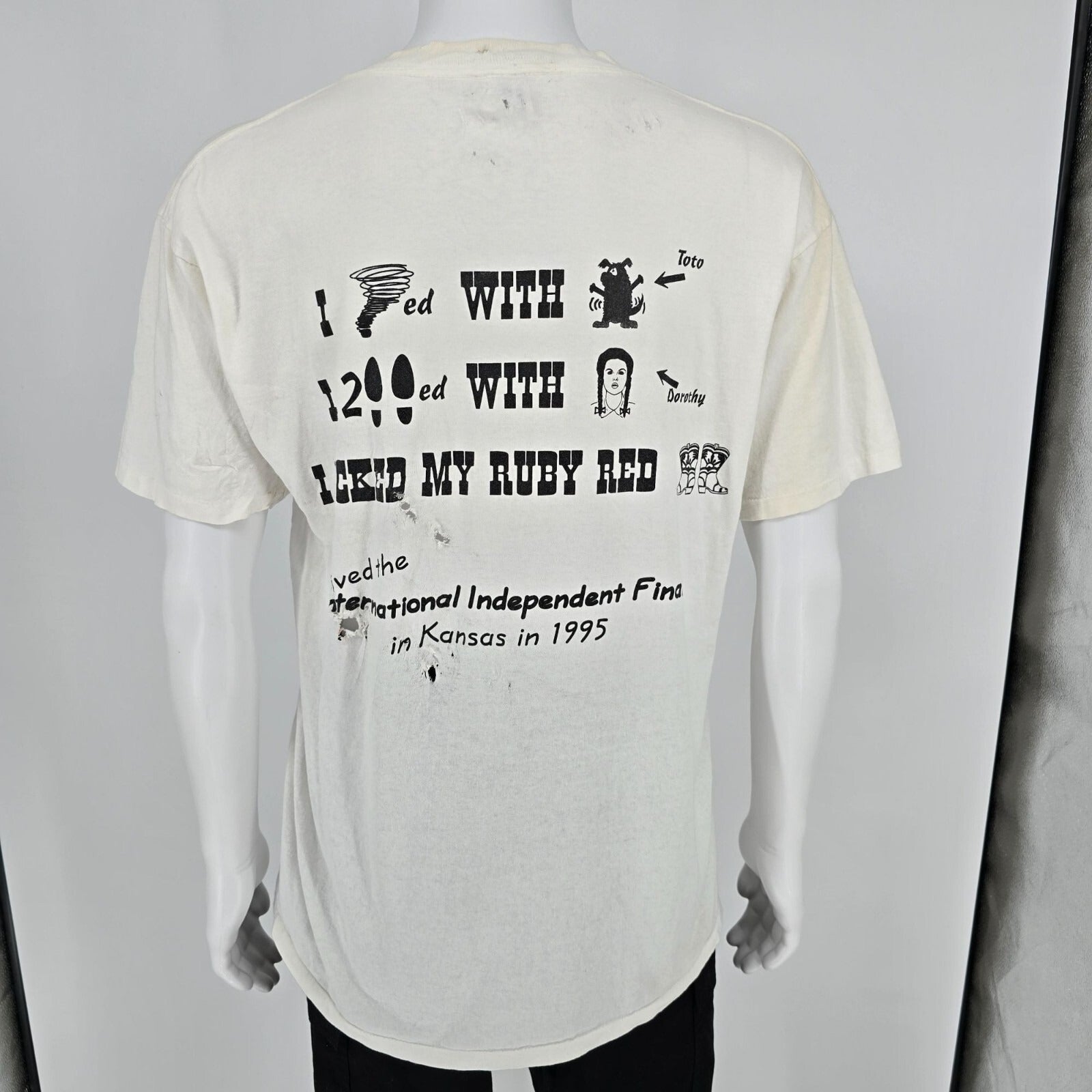 Notable Features: Single-Stitch cuffs and hem, cowboy boot graphic on front, Wizard of Oz references on back