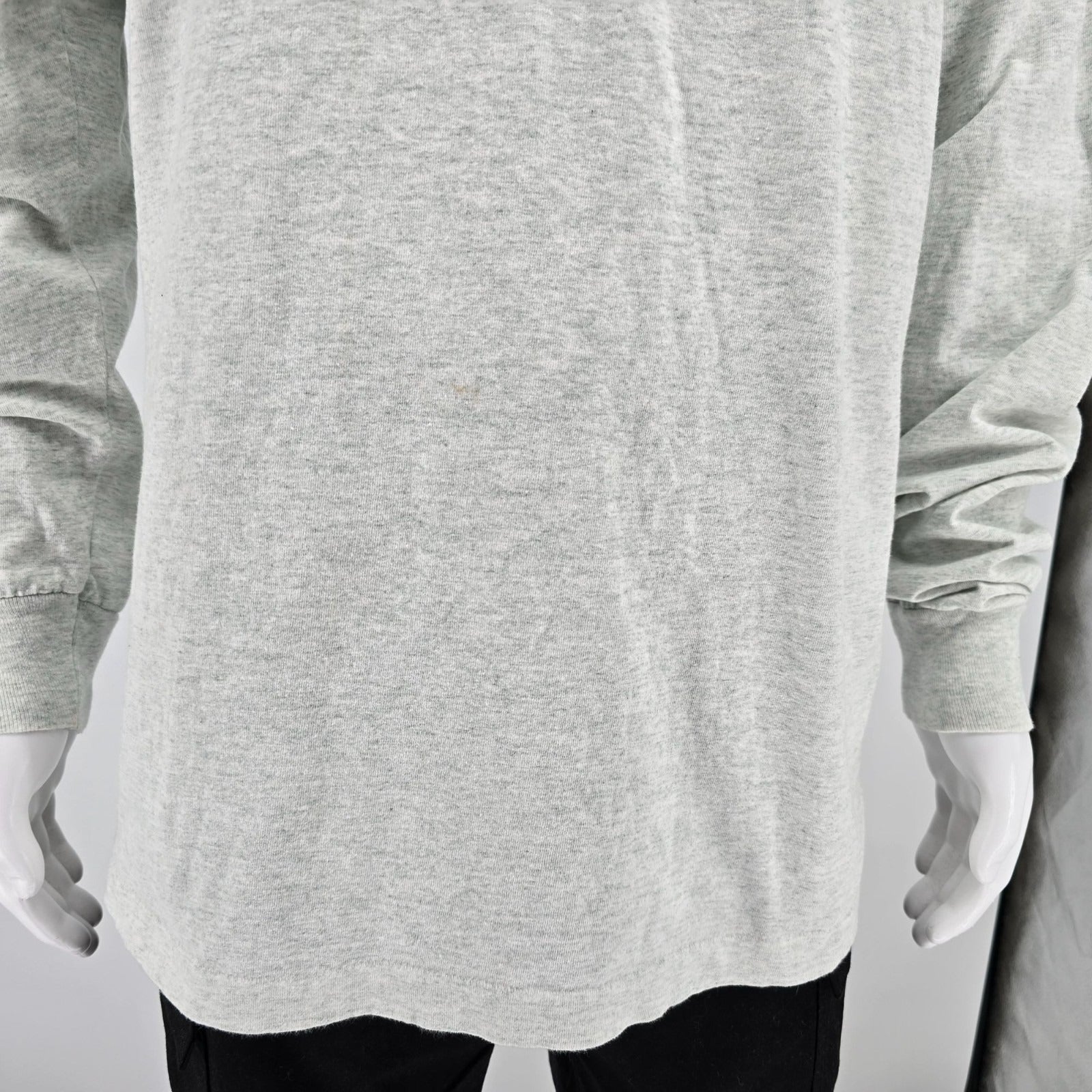 One small area of faint staining/discoloration in the middle of the front of the shirt.