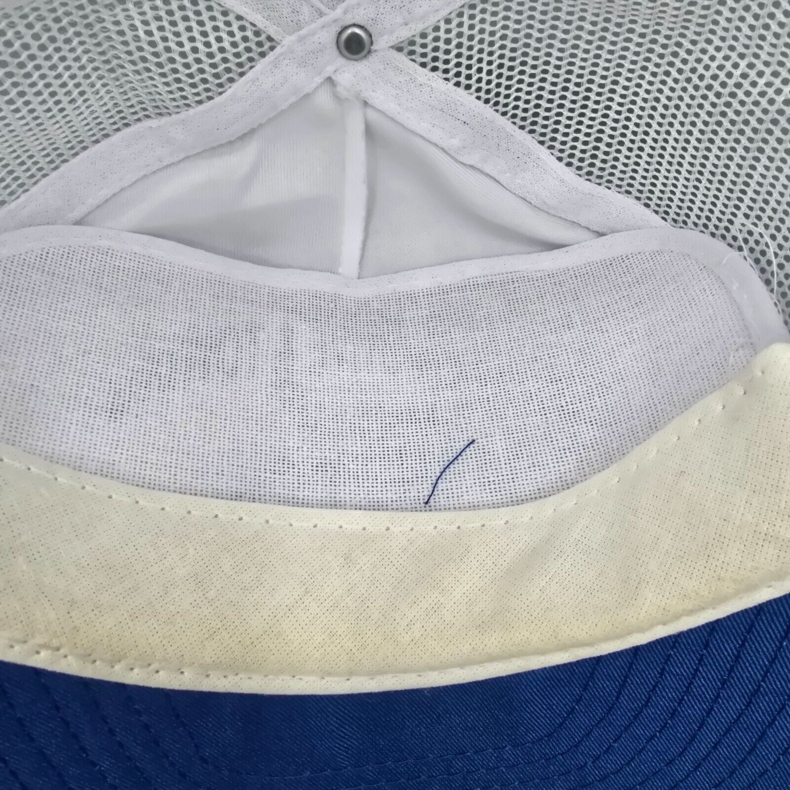 Condition Notes: Fair to good vintage used condition. Minor creasing in front panel from time in storage. Moderate yellowing and discoloration at sweatband. See photos.