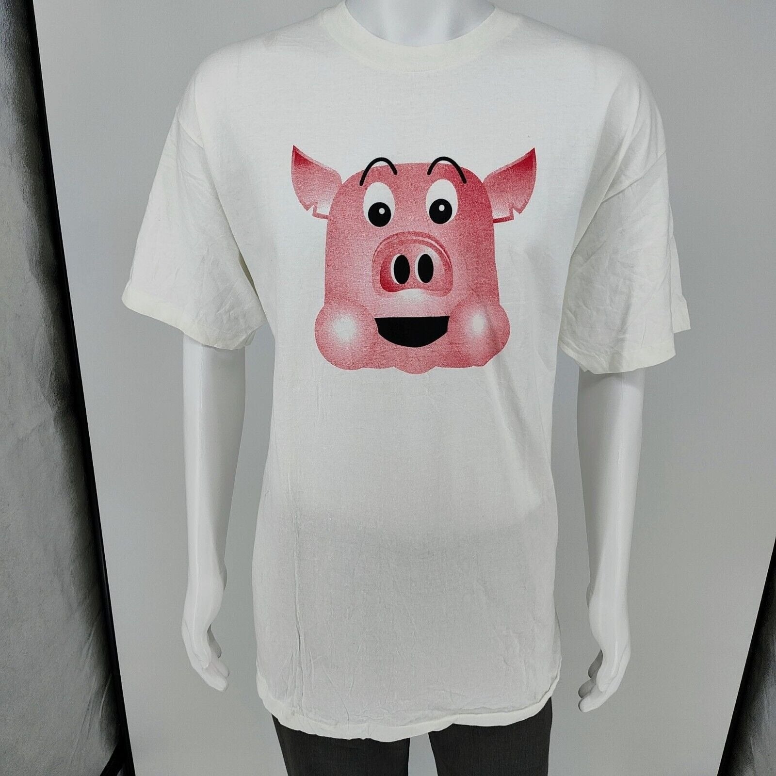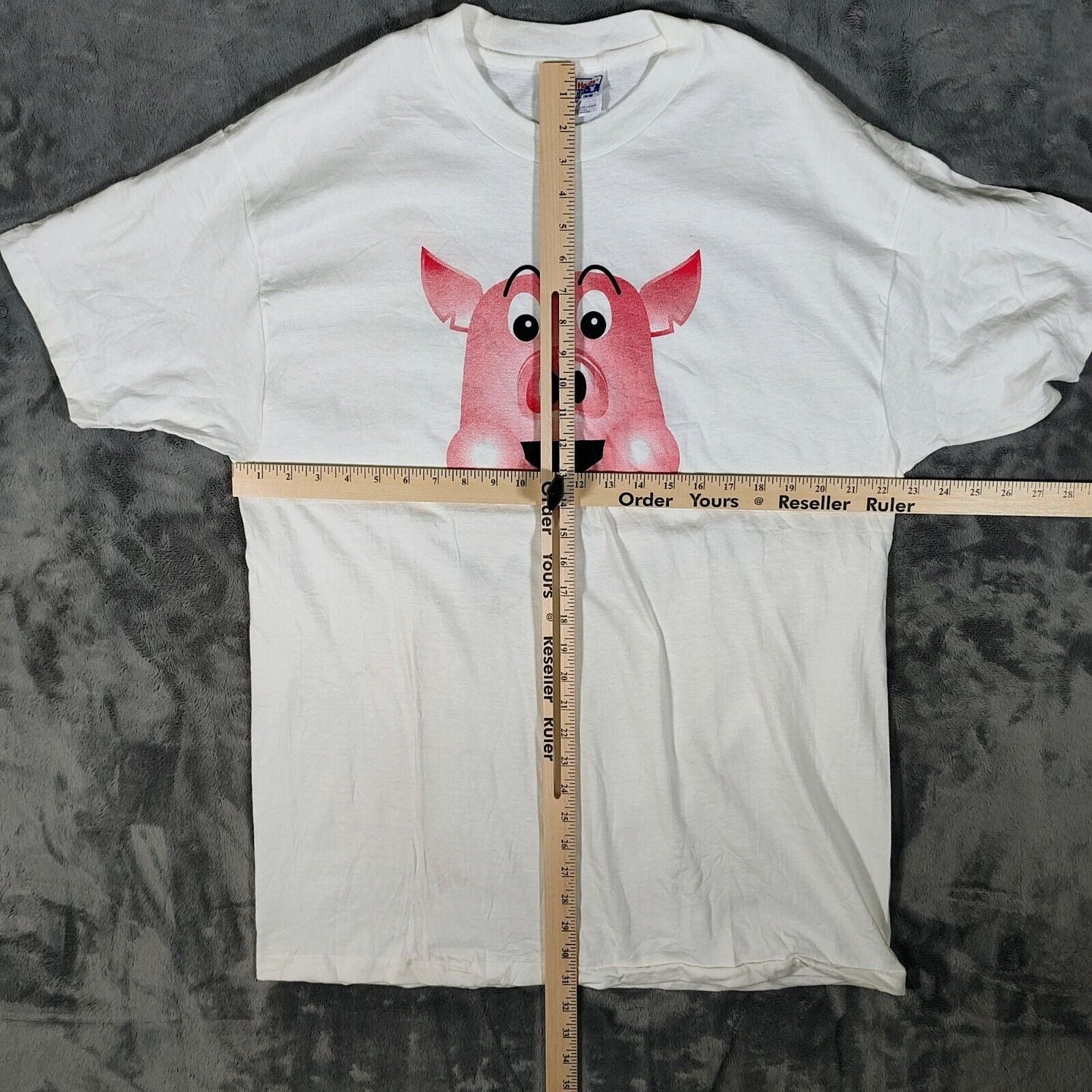 Vintage 90s Single-Stitch Hanes Beefy-T "Do The Pig" White Graphic T-Shirt (XL)