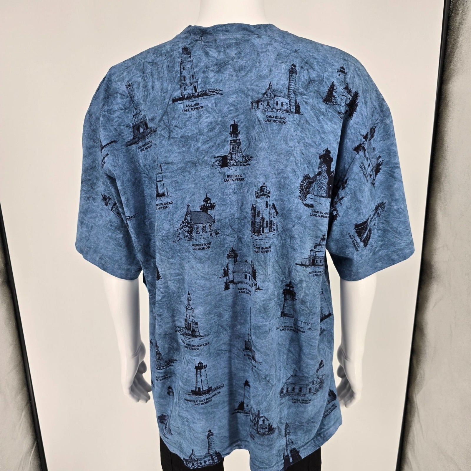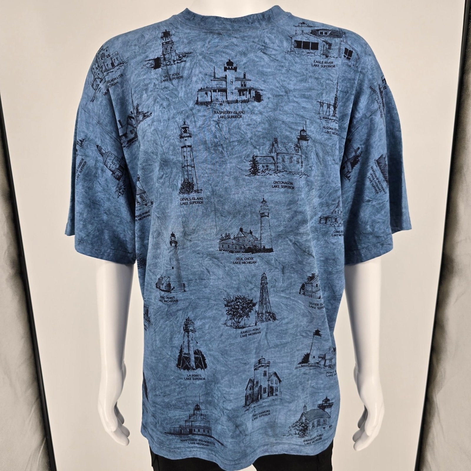 Vintage Deadstock 1990s Art Unlimited Great Lakes Lighthouses AOP T-Shirt (XXL)