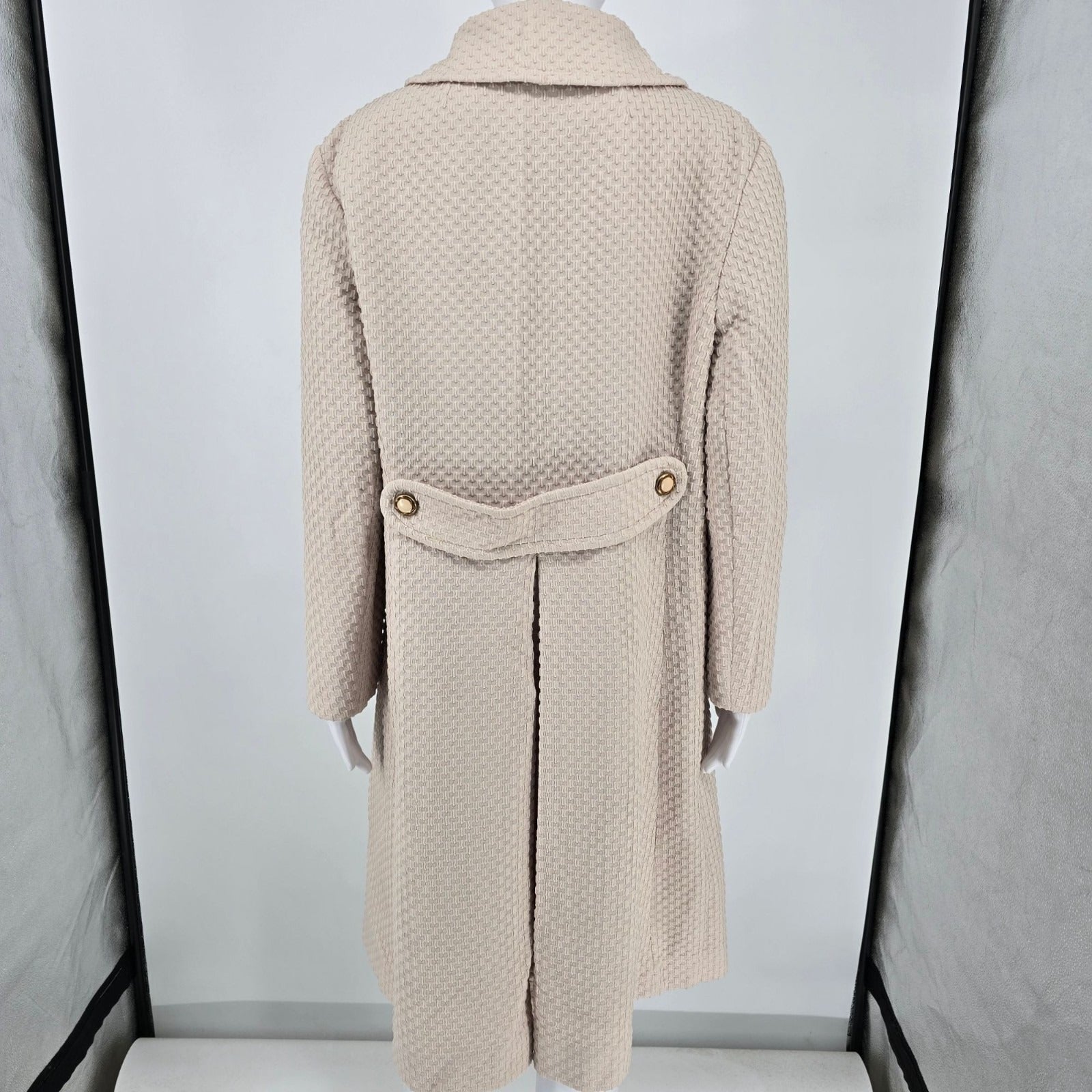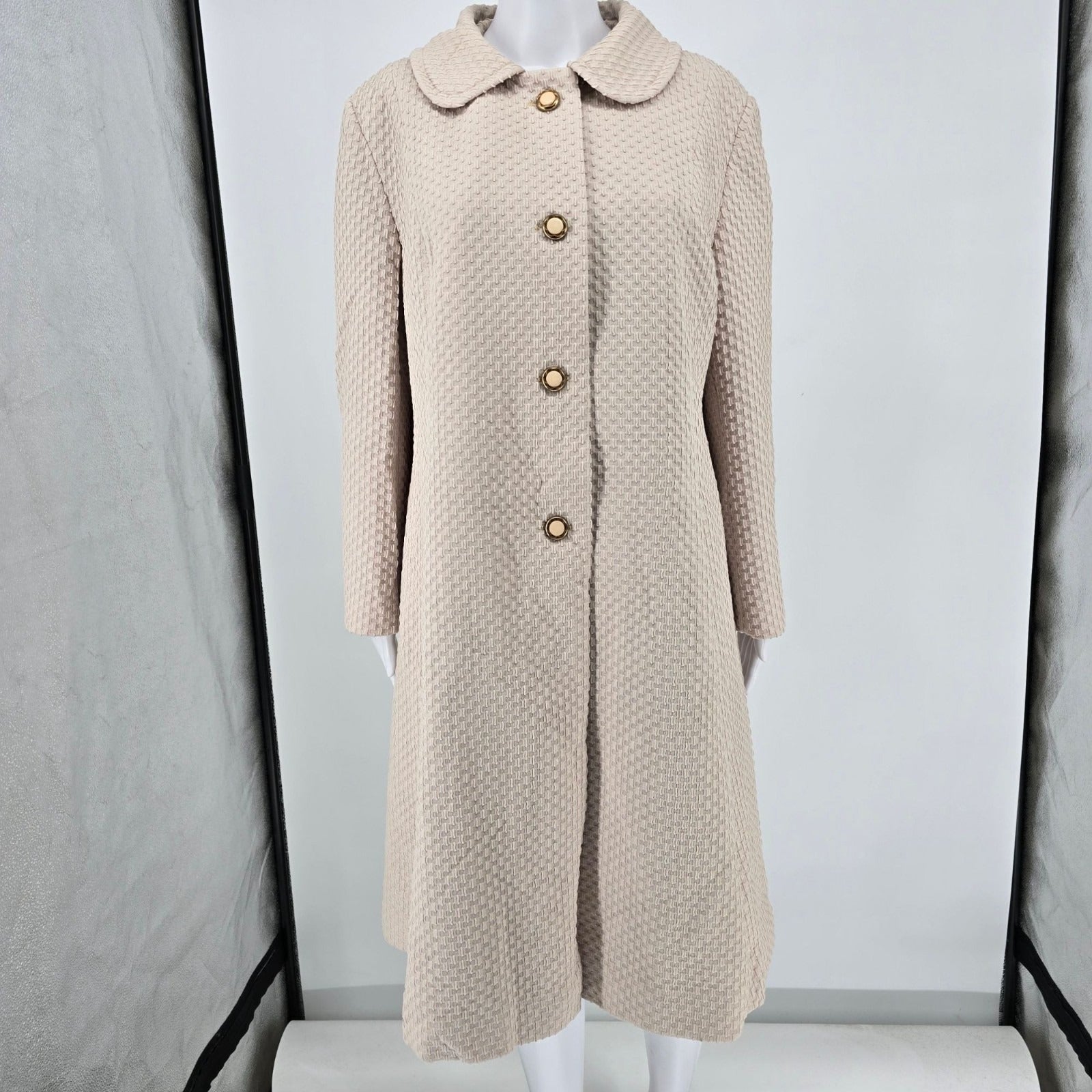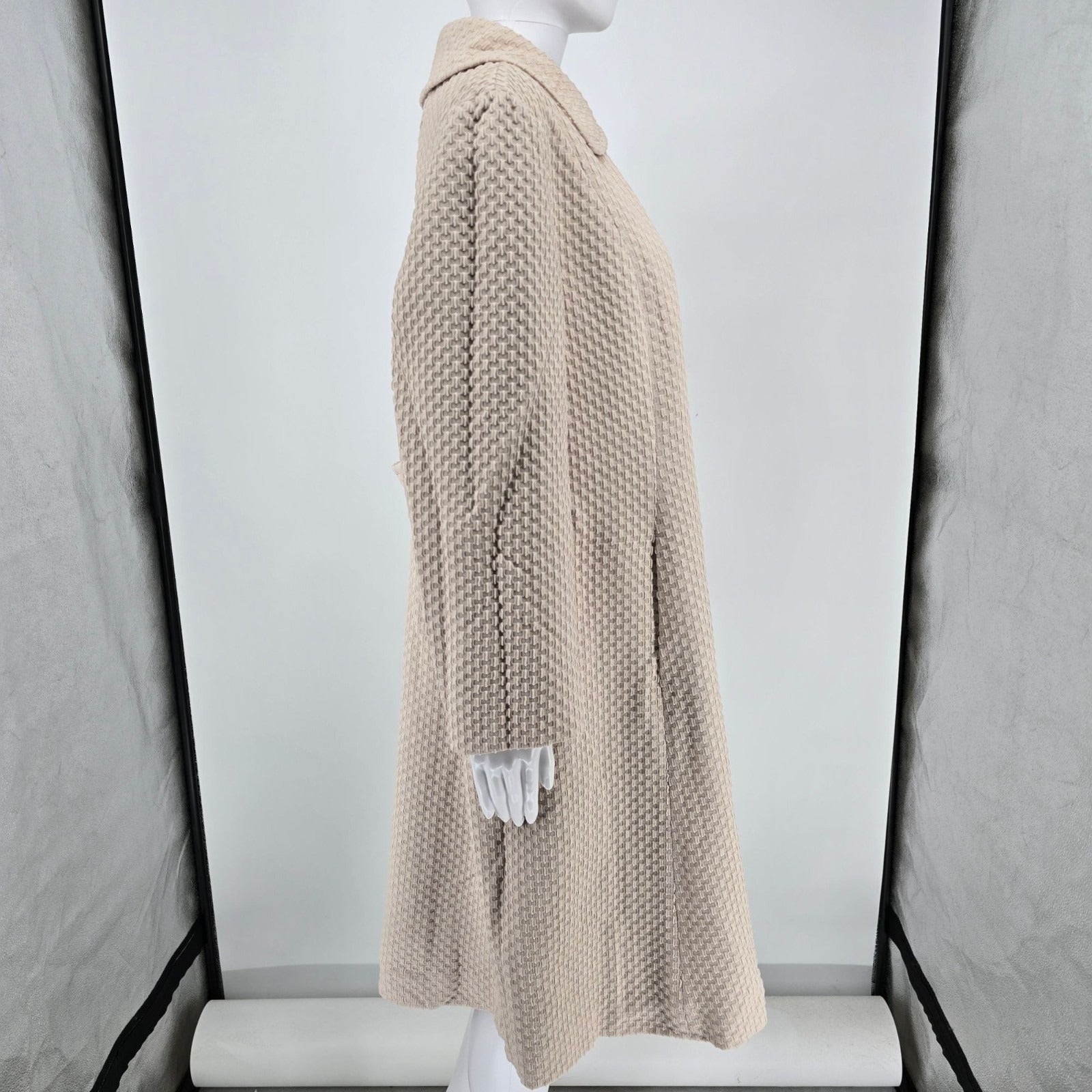 Vintage Early 1970s Alorna Women's Beige Textured A-Line Mod Coat (Large)