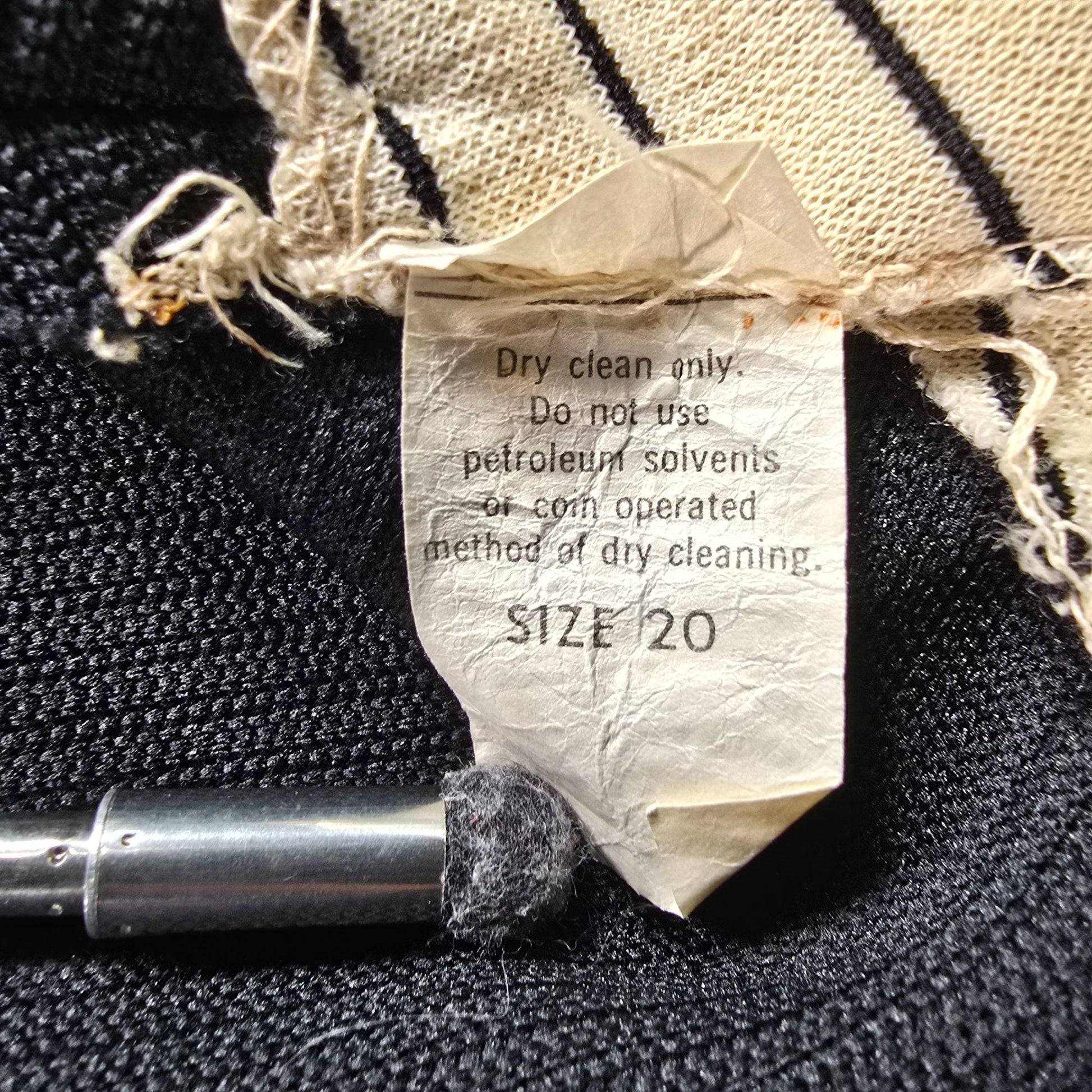 Vintage Early 1970s R&K Knits Black & Cream Pinstripe Contrast Dress (L) *Flaw