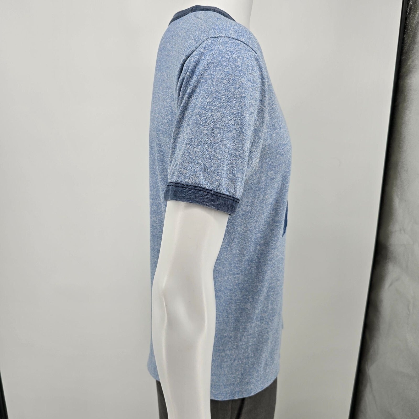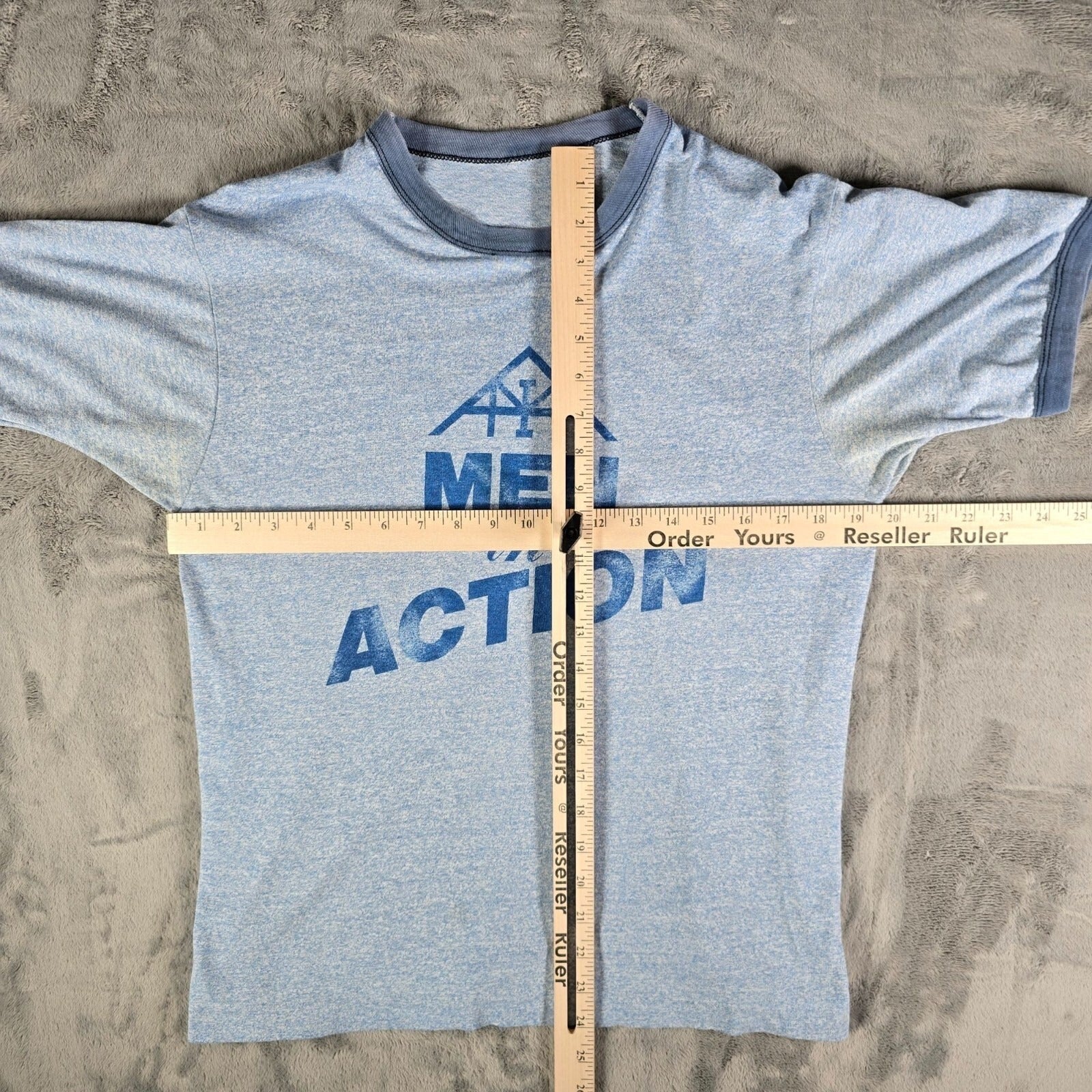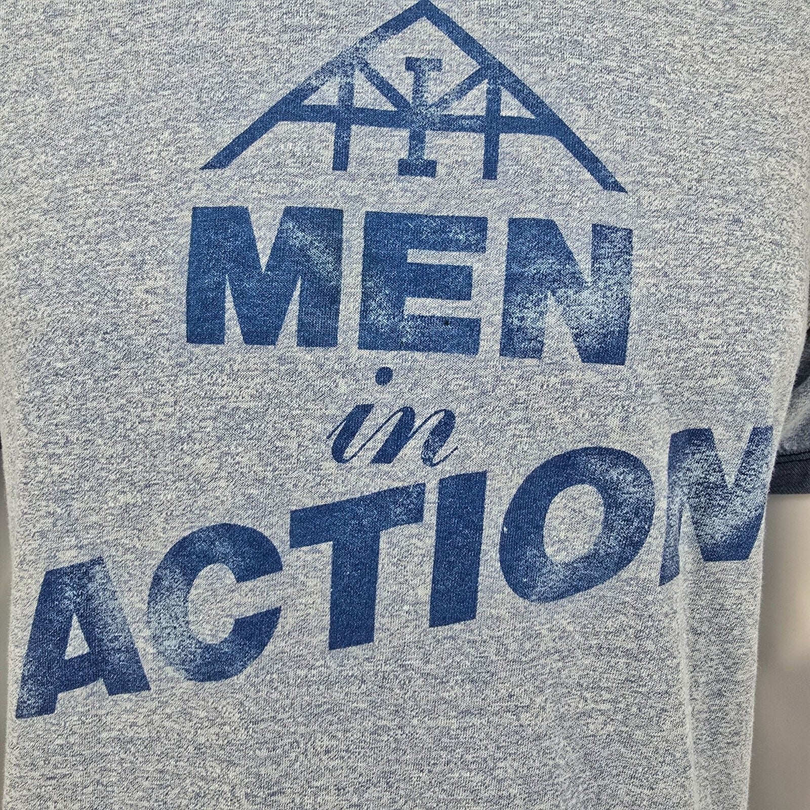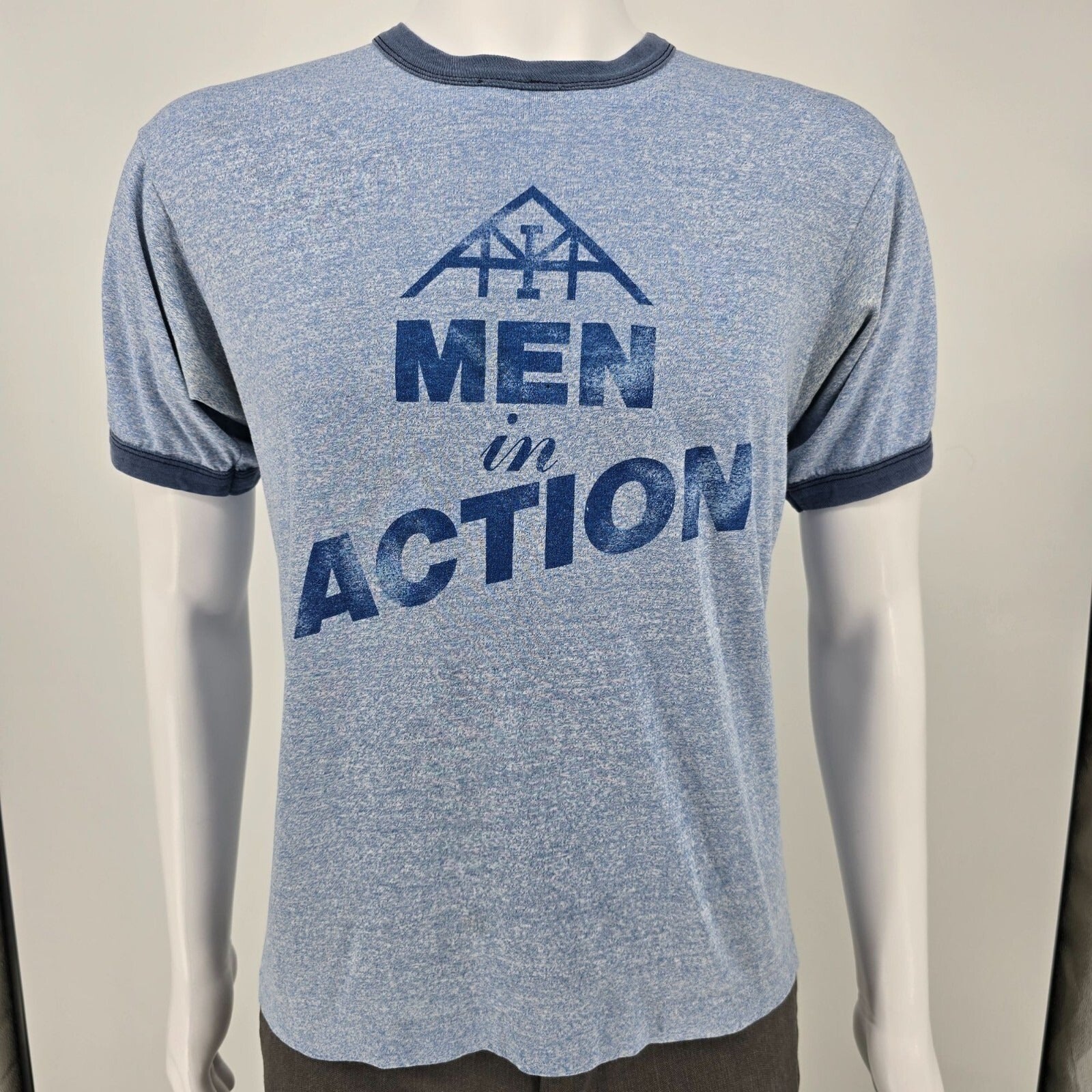 Vintage Late 1970s Early 1980s "Men in Action" Heather Blue Ringer T-Shirt (M)