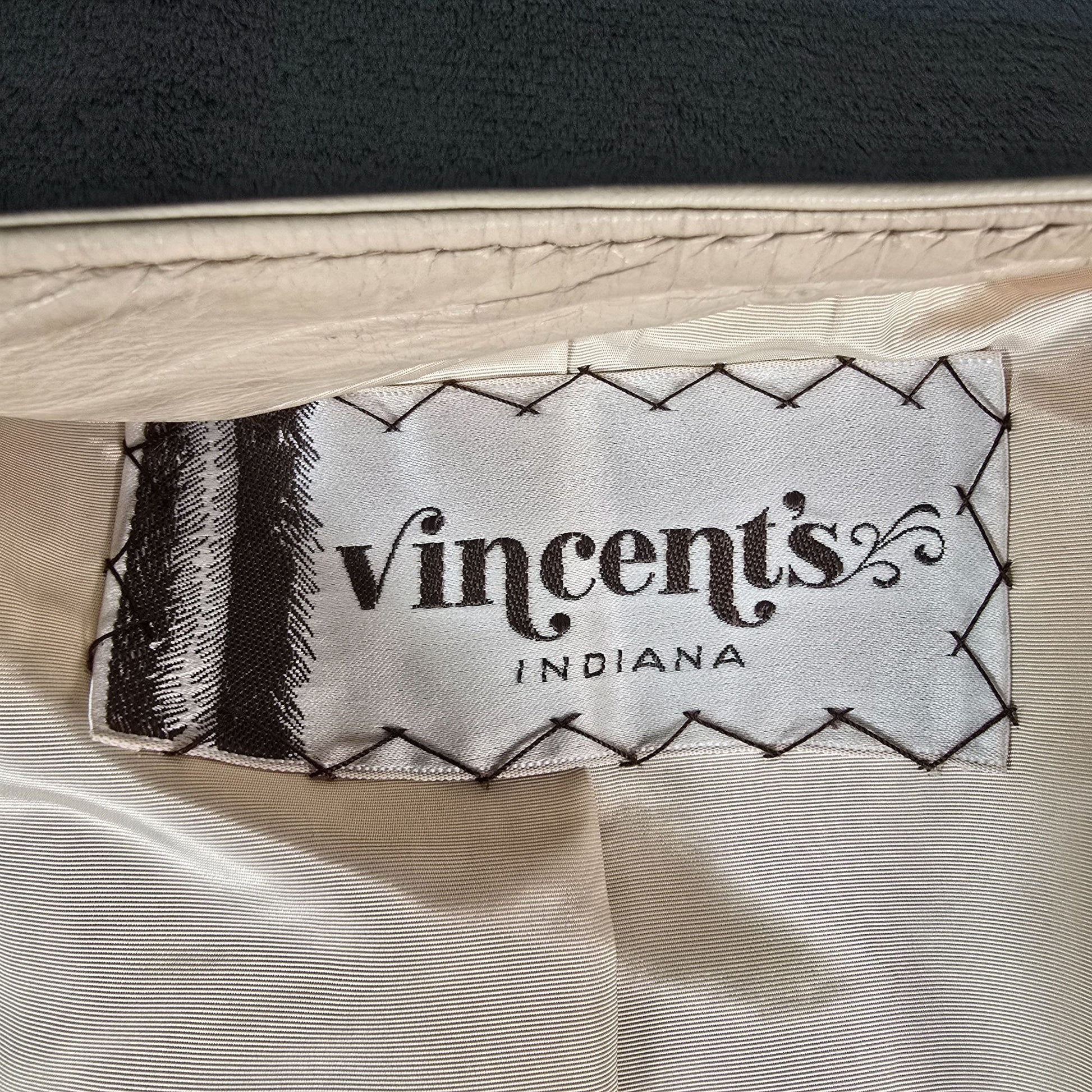 Vintage Late 1970s Vincent's Indiana Beige Leather Wrap Belted Coat (M) *Fair