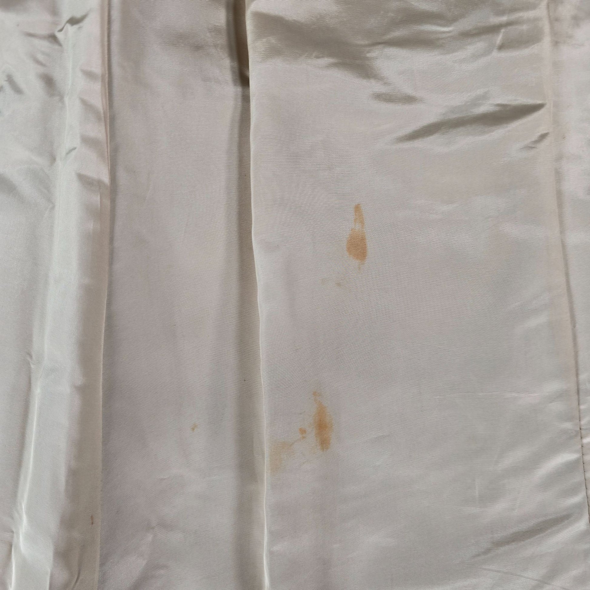 Multiple areas of discoloration on the bottom half of the front of the coat.