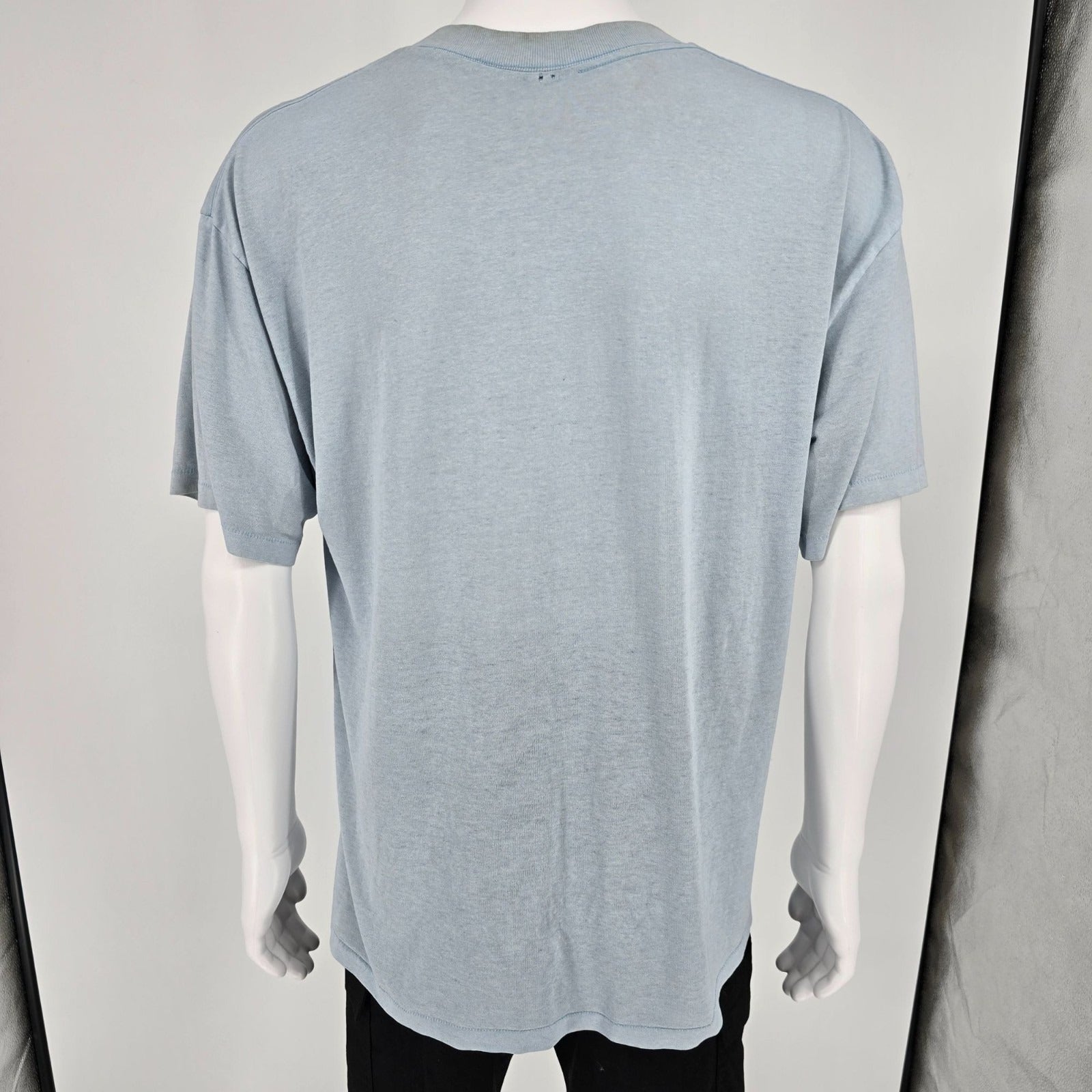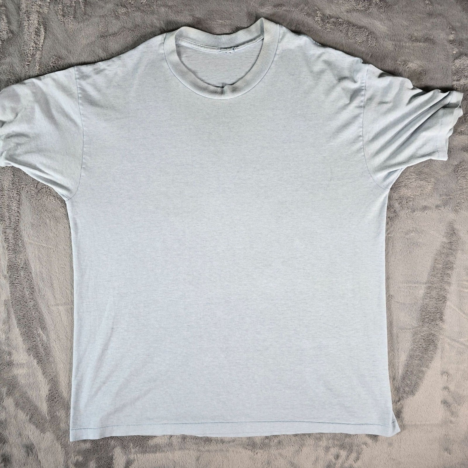 Vintage Late 1980s Heather Light Blue Single Stitch Blank T-Shirt (XL)