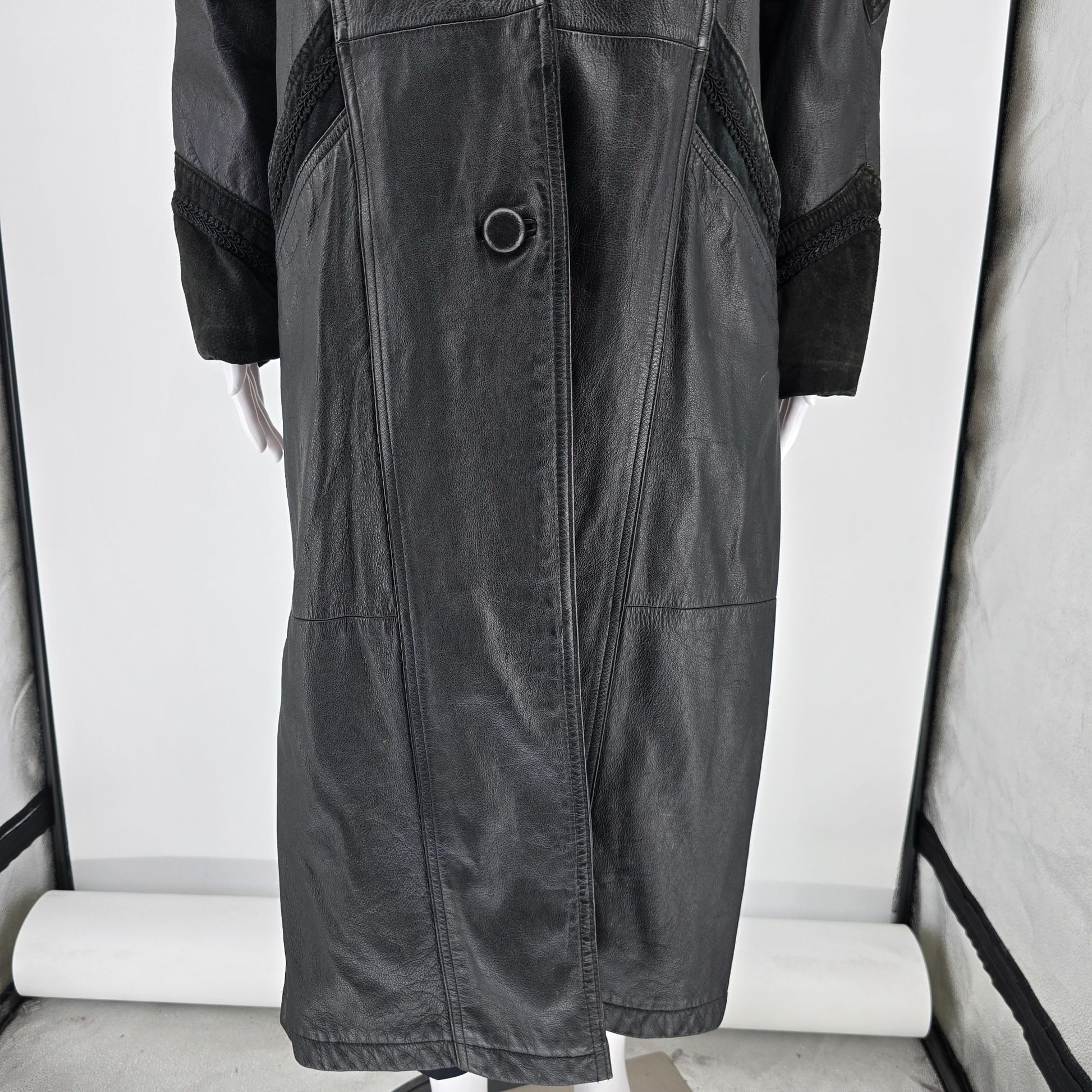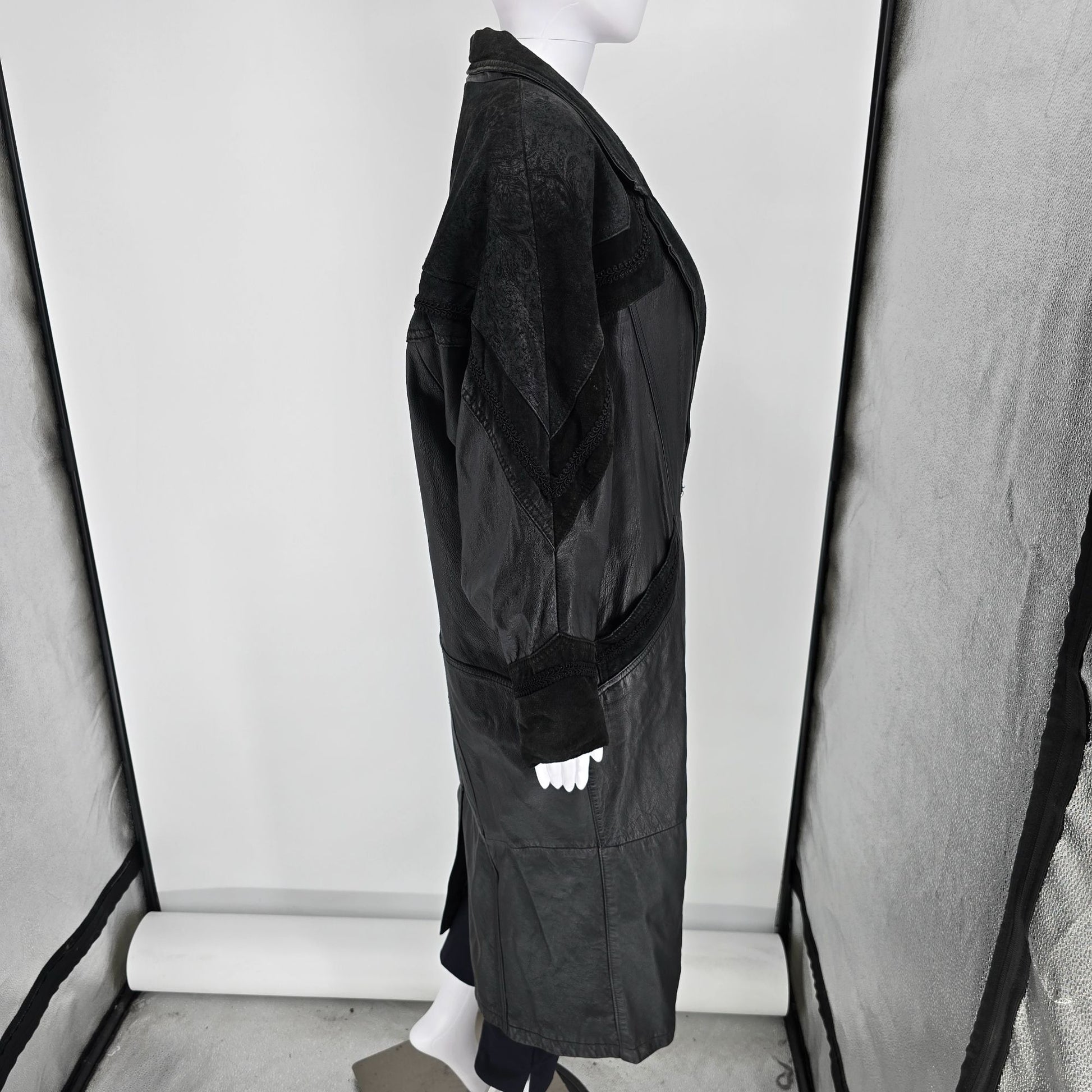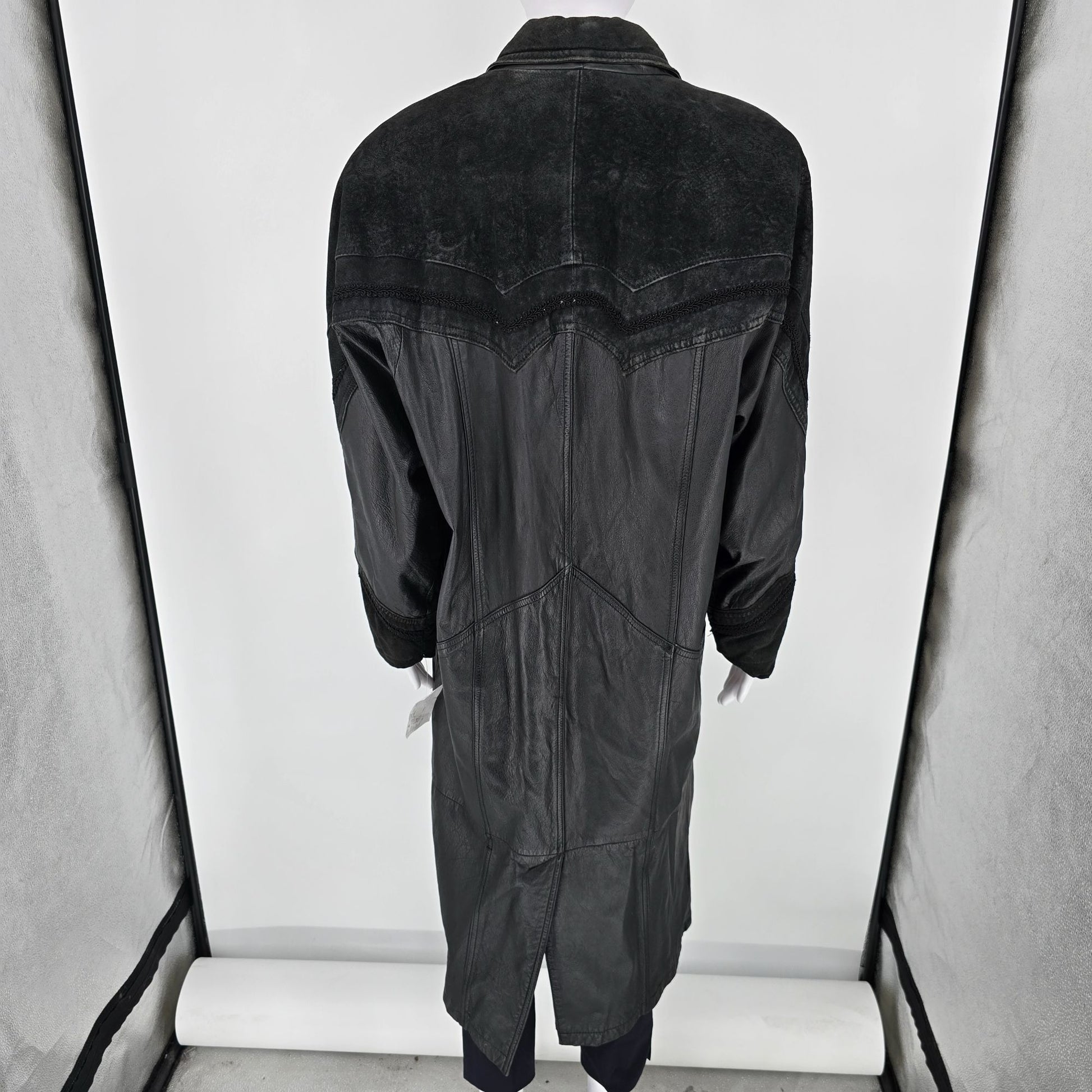 Vintage Late 1980s Maggie Lawrence Women's Paisely Trim Leather Duster Coat (M)