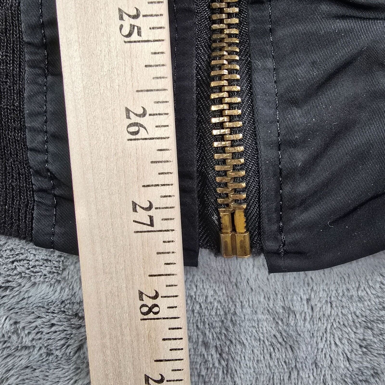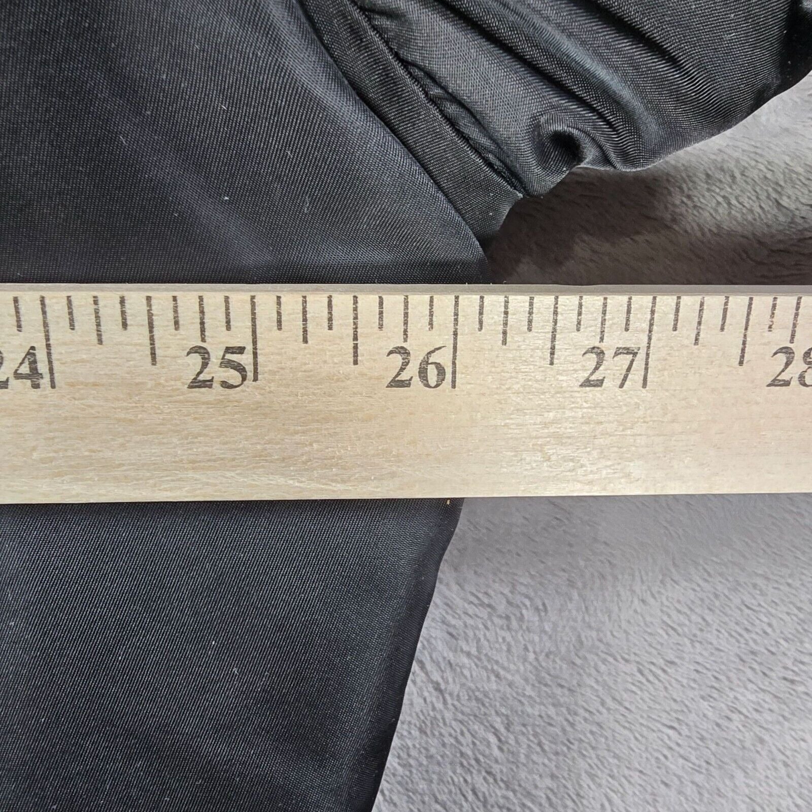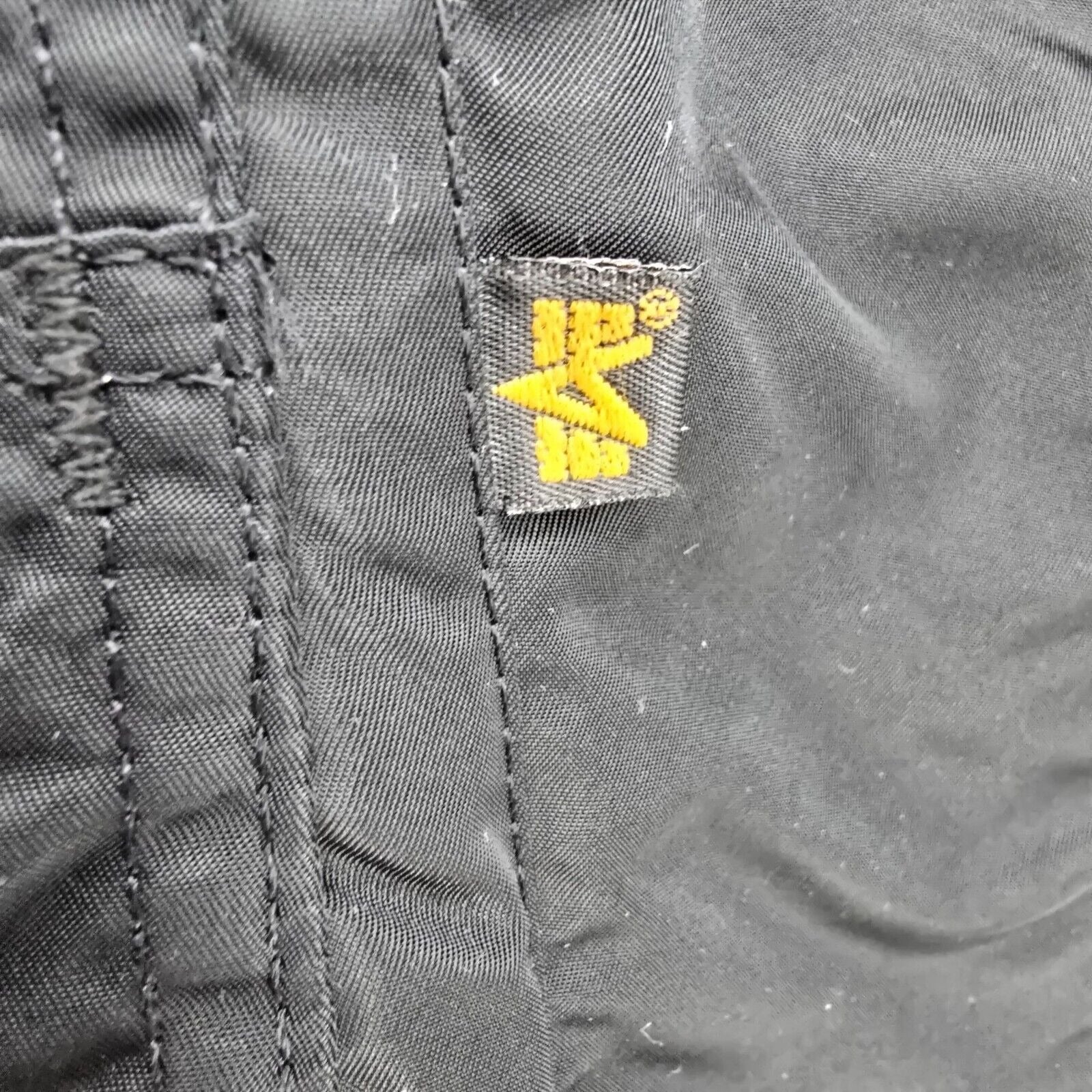 Condition Notes: Good used vintage condition. Zipper is tricky when wearing the coat with the orange side on the outside. Multiple spots of visible fabric wear on the black side of the jacket, and moderate wear throughout. See photos.