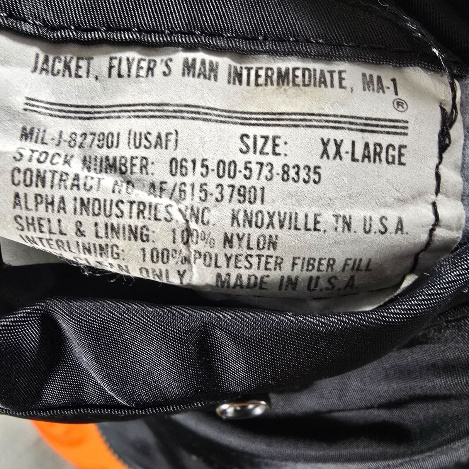 Vintage Made in USA Alpha Industries MA-1 Custom Embroidered Bomber Jacket 2XL
