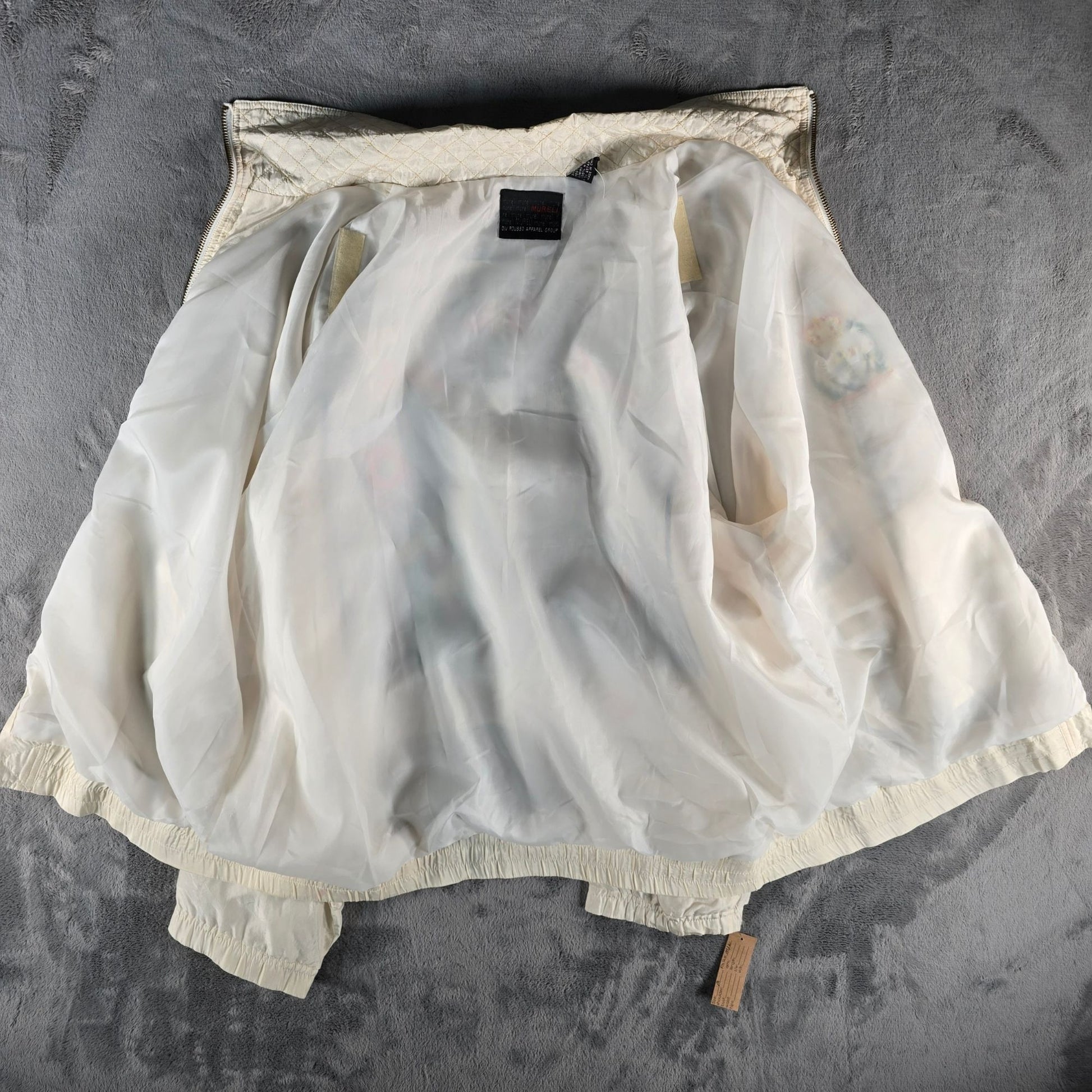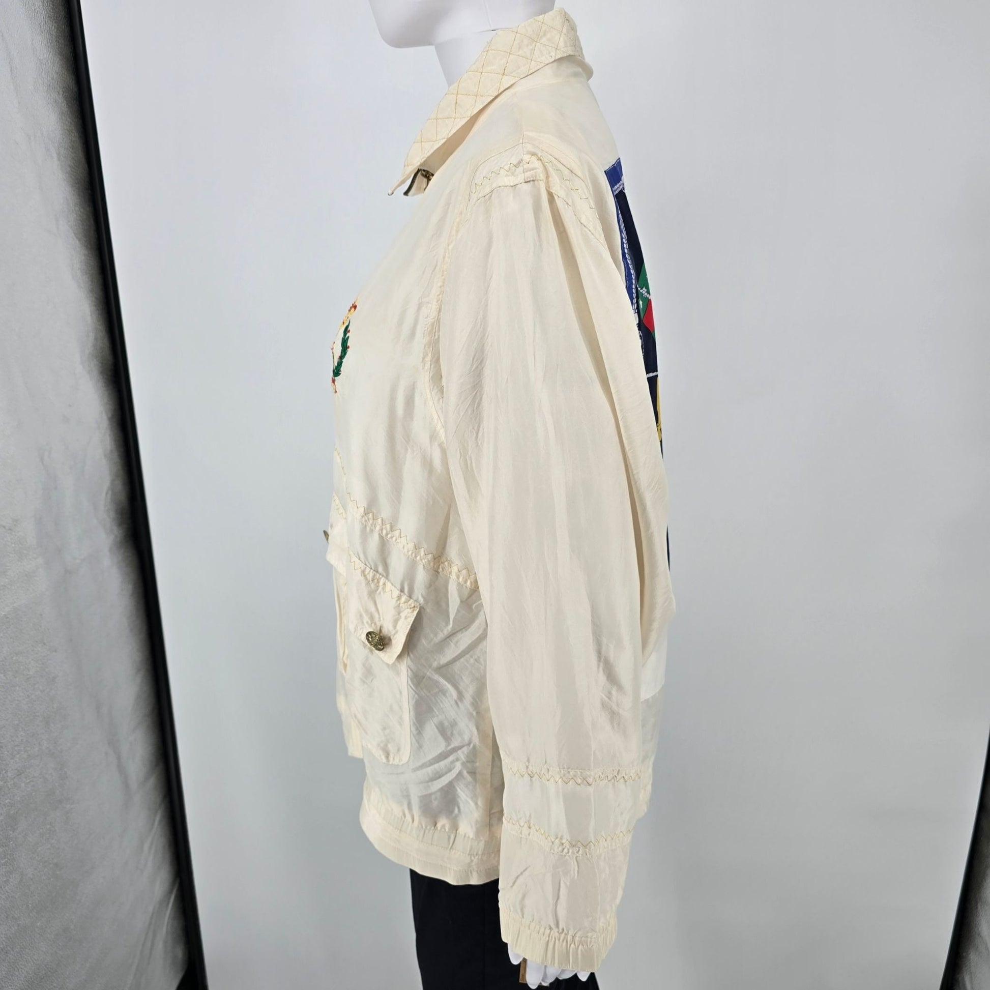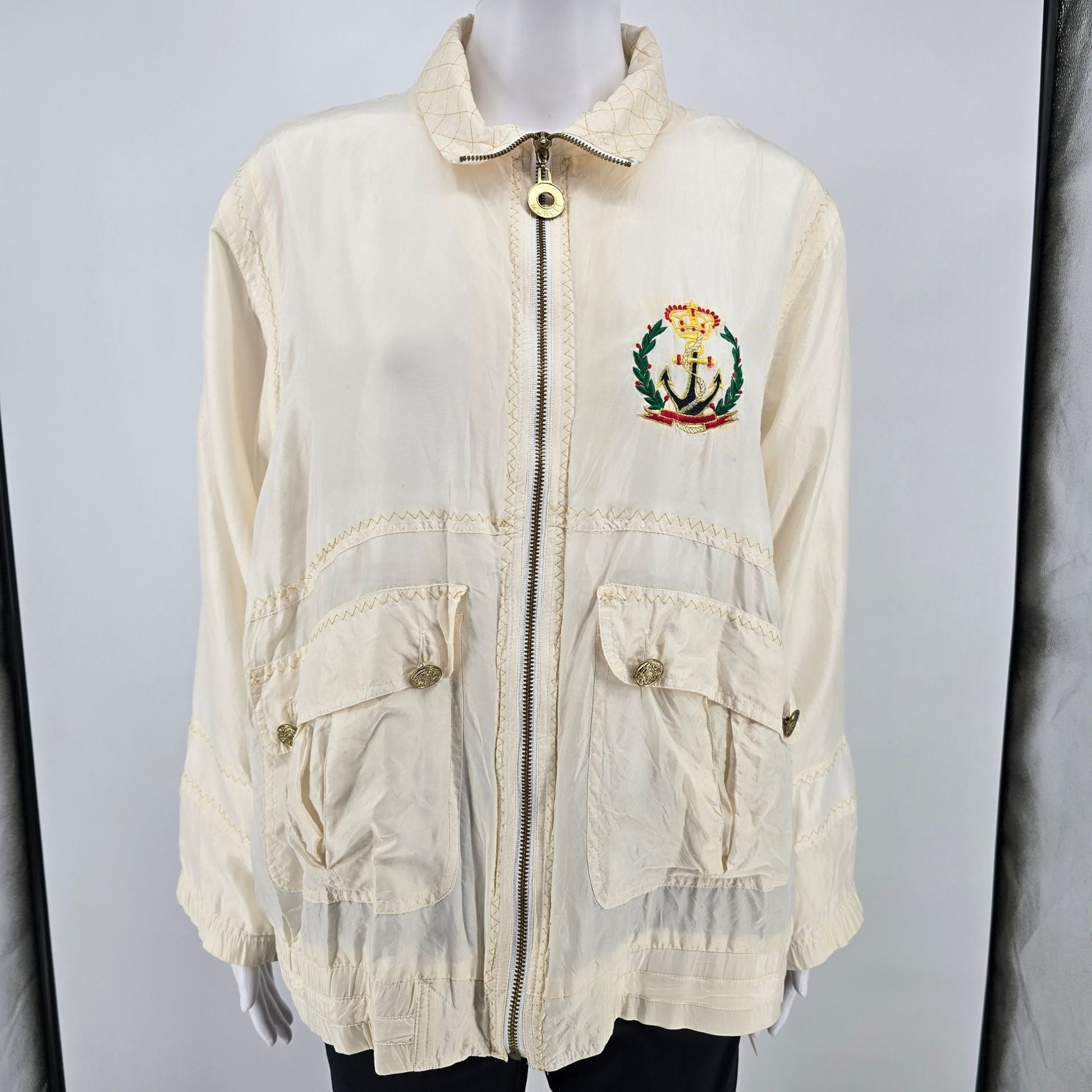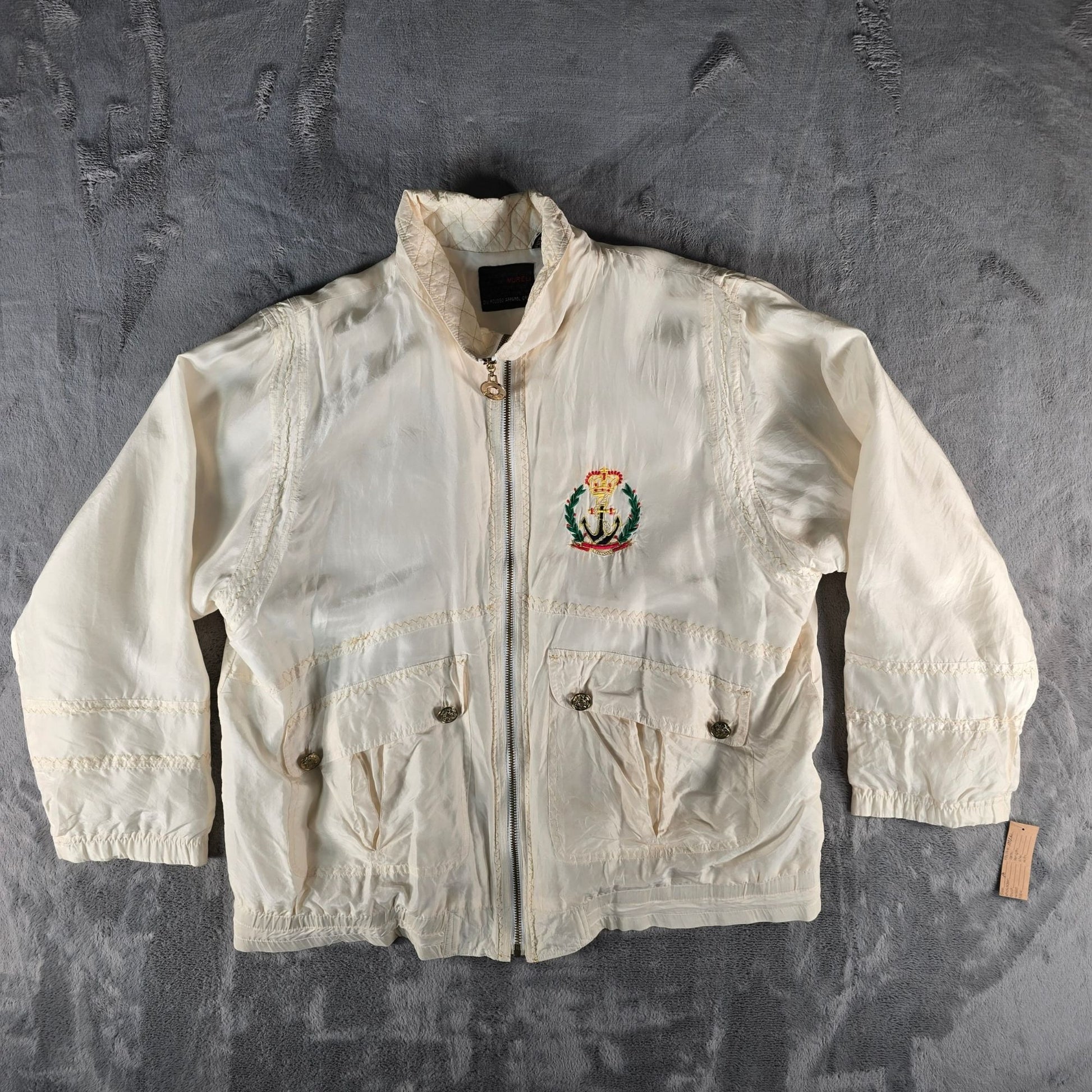 Vintage Nautical Sailing Jacket With Embroidered Crown & Flags Design Zip Front Beige Unisex