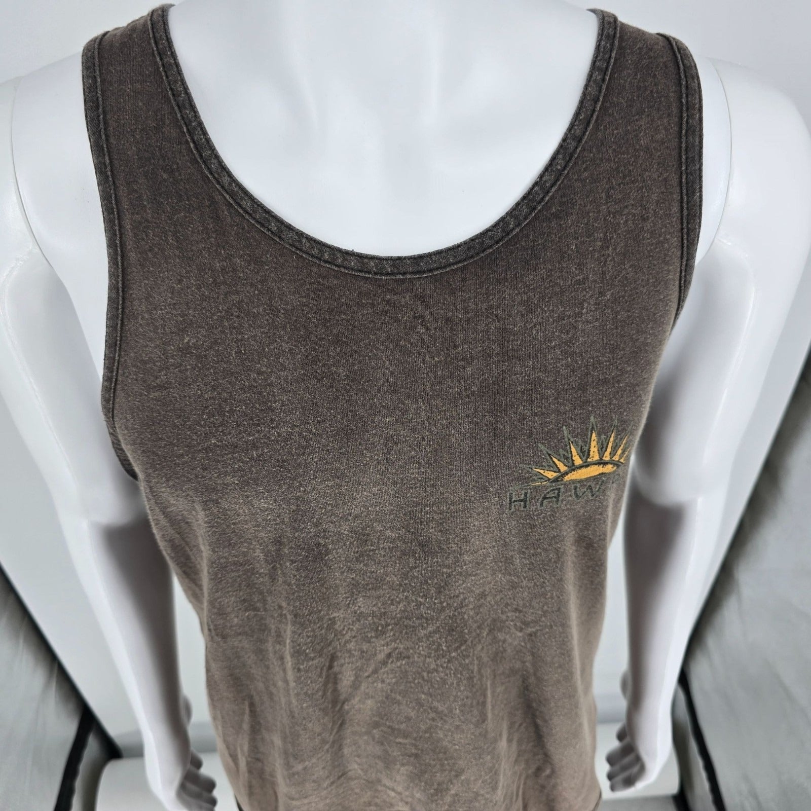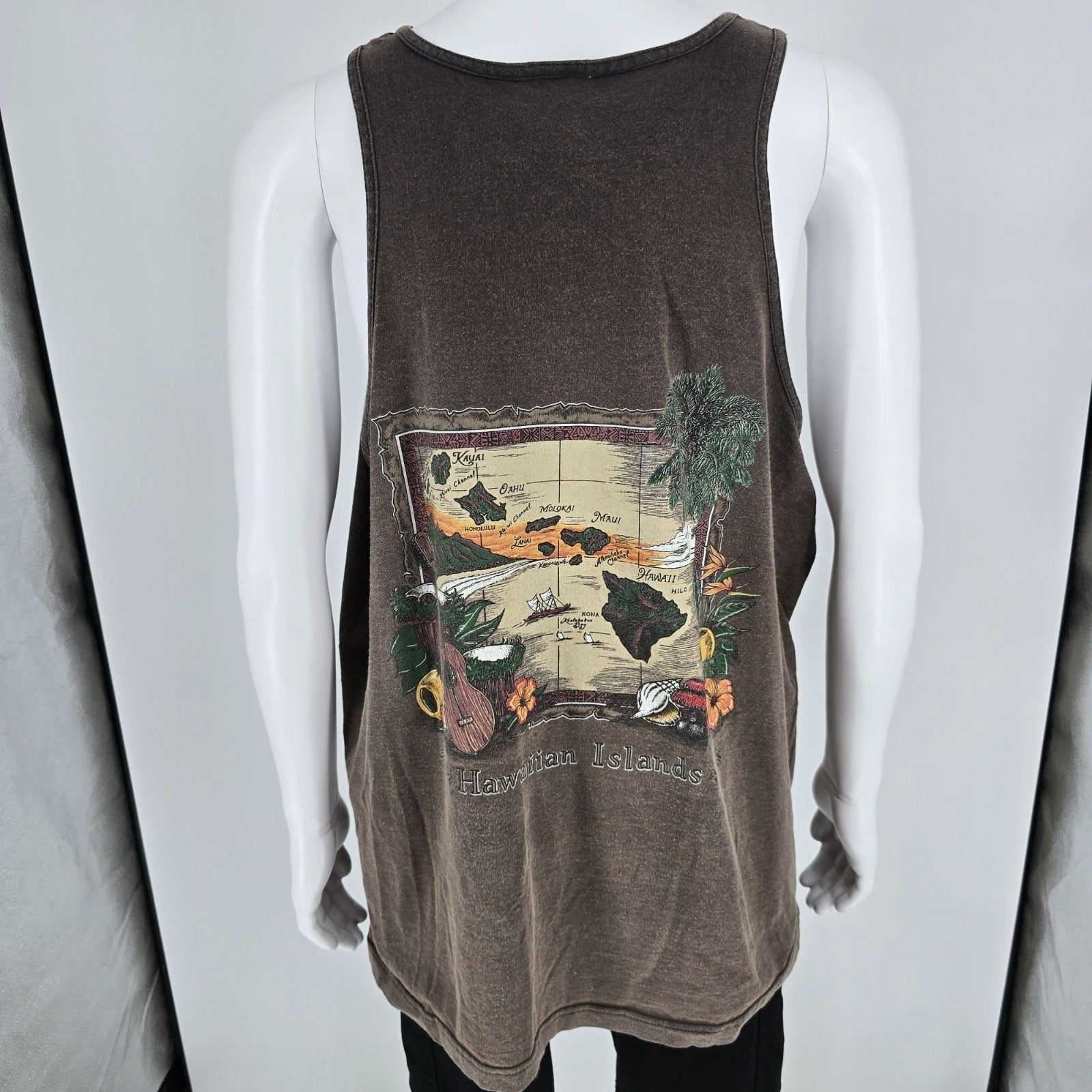 Vintage Y2K AAA Hawaiian Island Map Faded Brown Tourist Souvenir Tank Top (2XL)