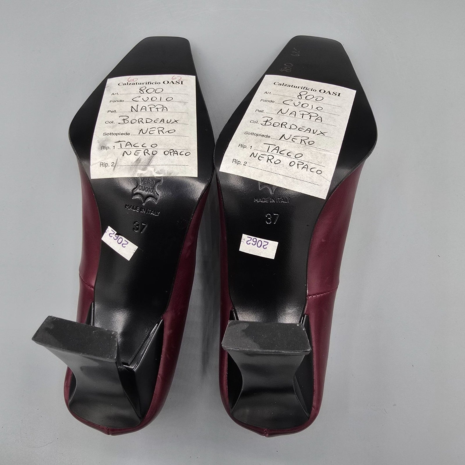 Vintage Y2K Deadstock Pari & Pari Bordeaux Nappa Square-Toe Pumps (EU37/US6.5)