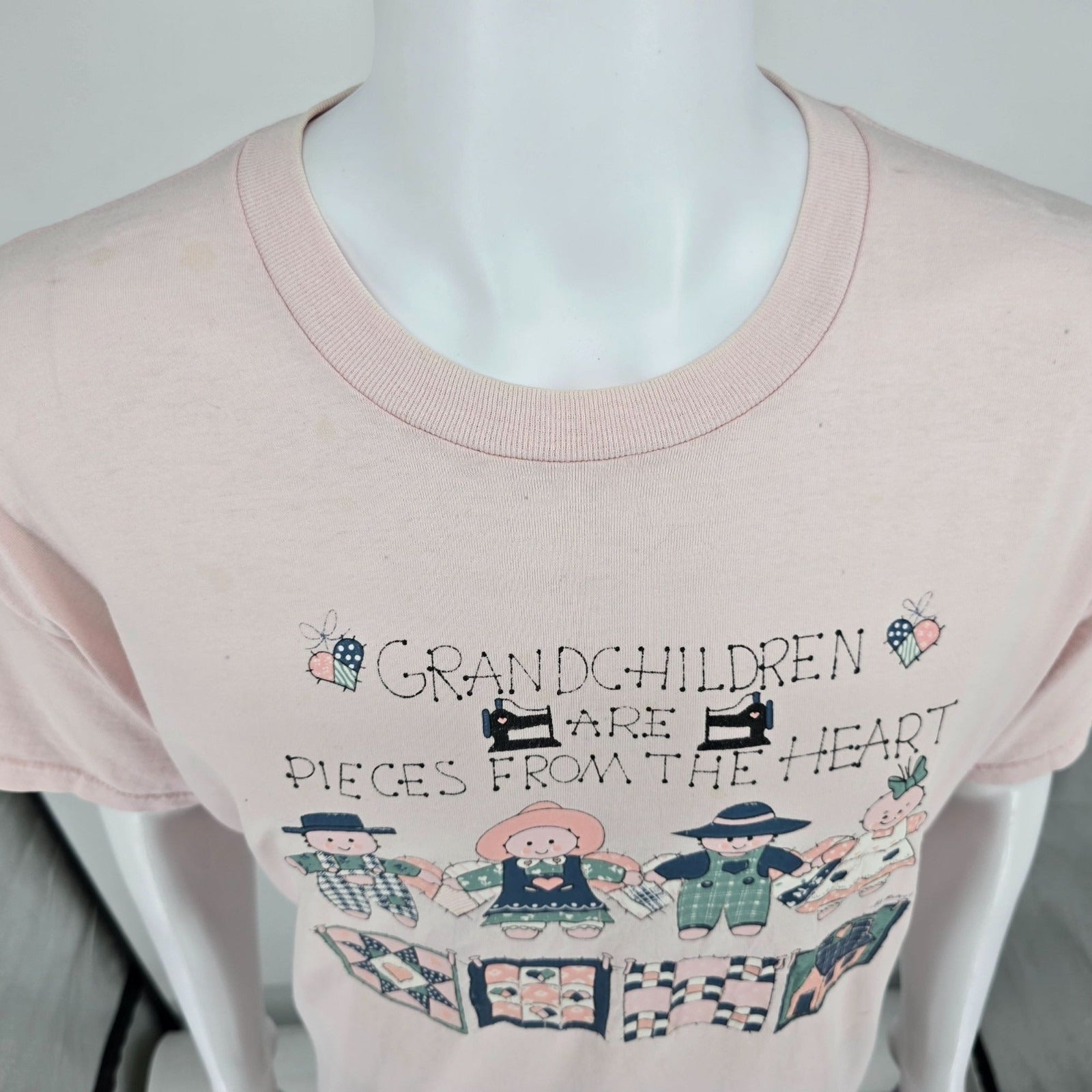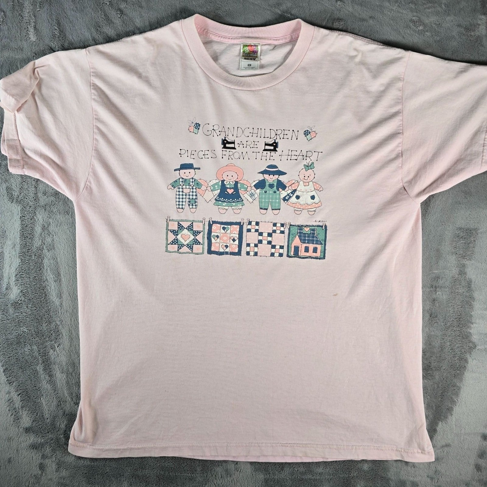 Vintage Y2K "Grandchildren Are Pieces from the Heart" Quilt Graphic T-Shirt (XL)