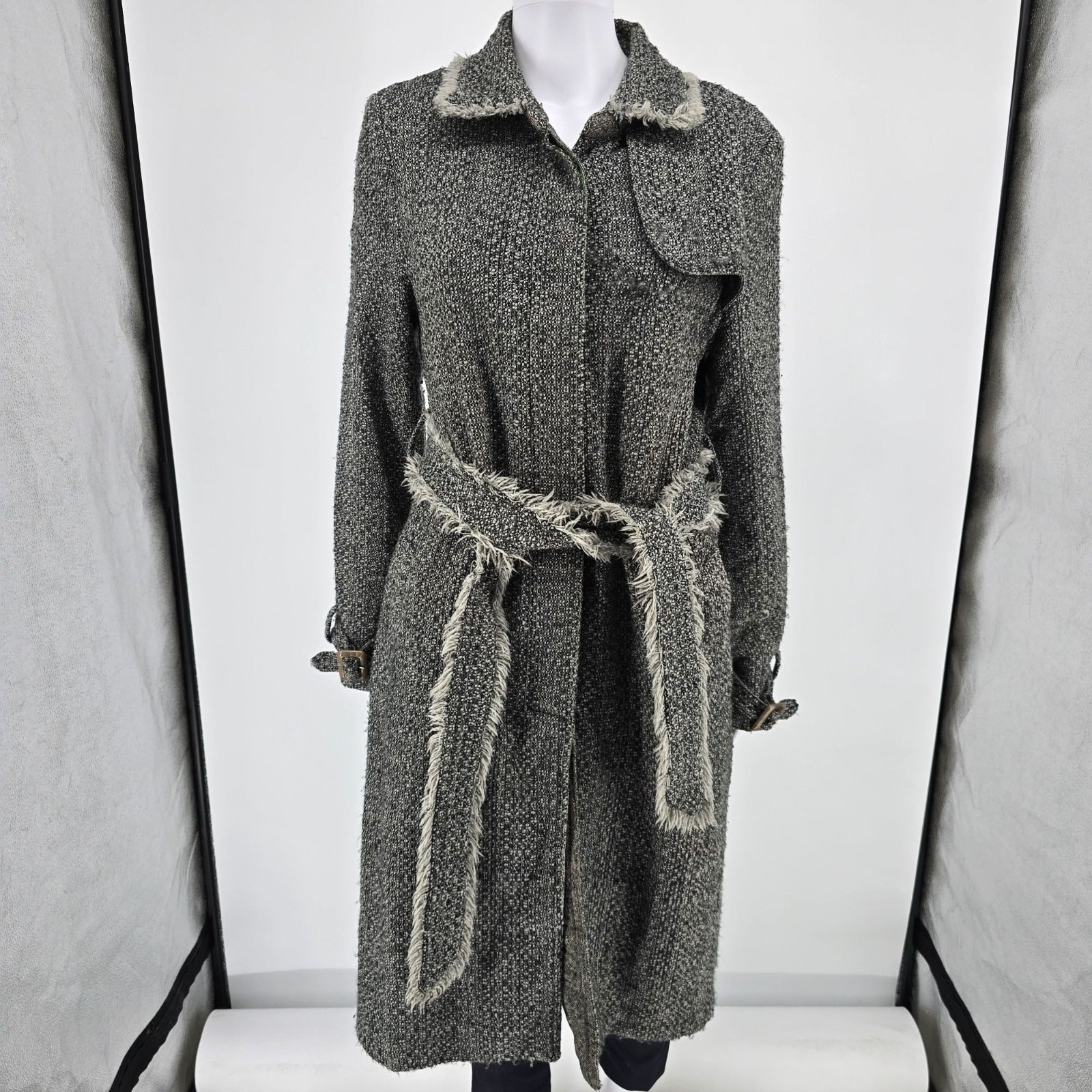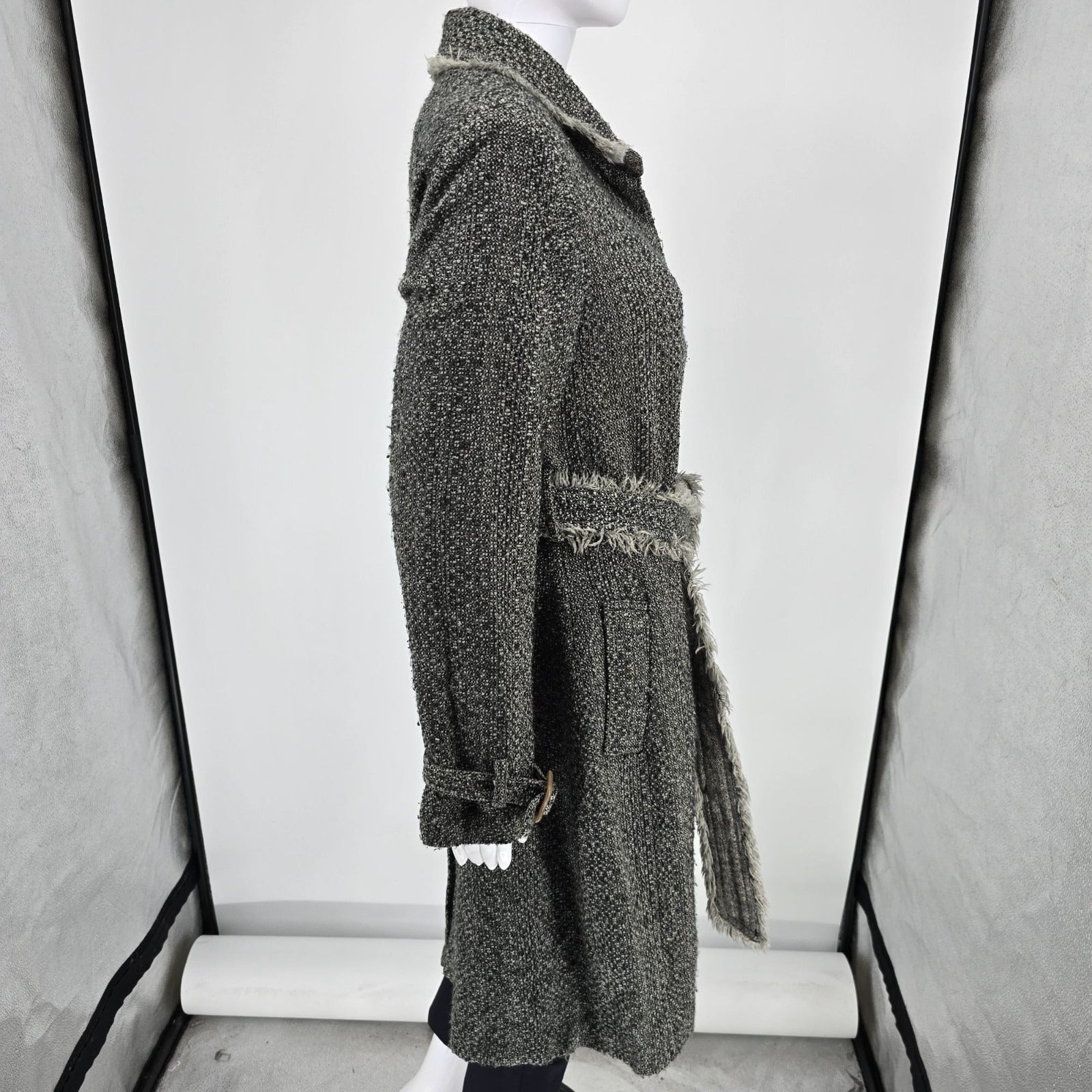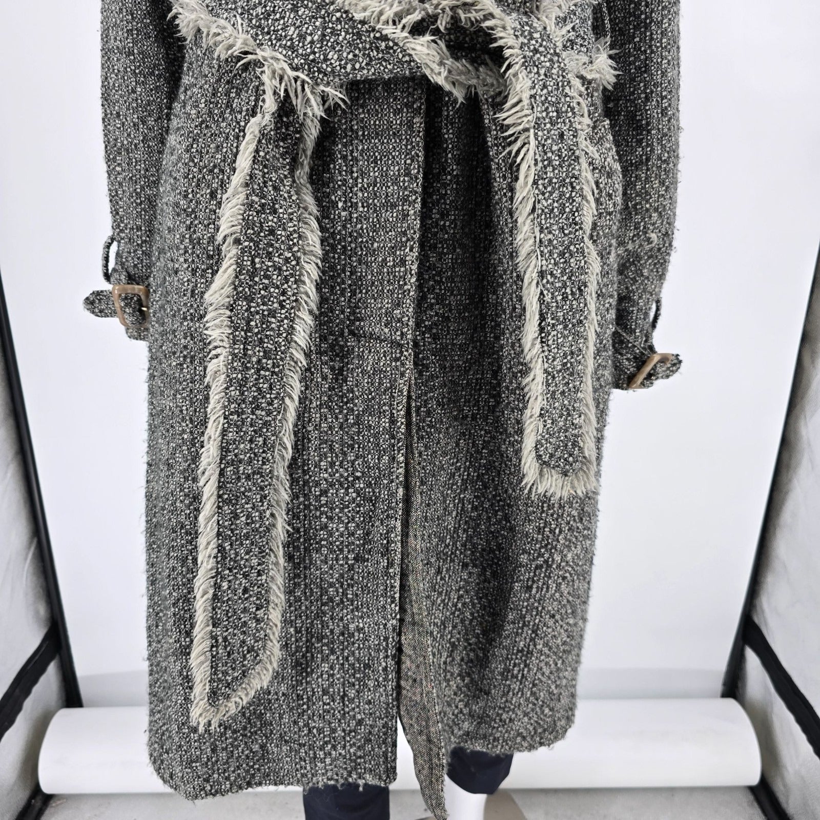 Vintage Y2K True Meaning Womens Boho Raw Edge Bouclé Belted Gray Long Coat (L)