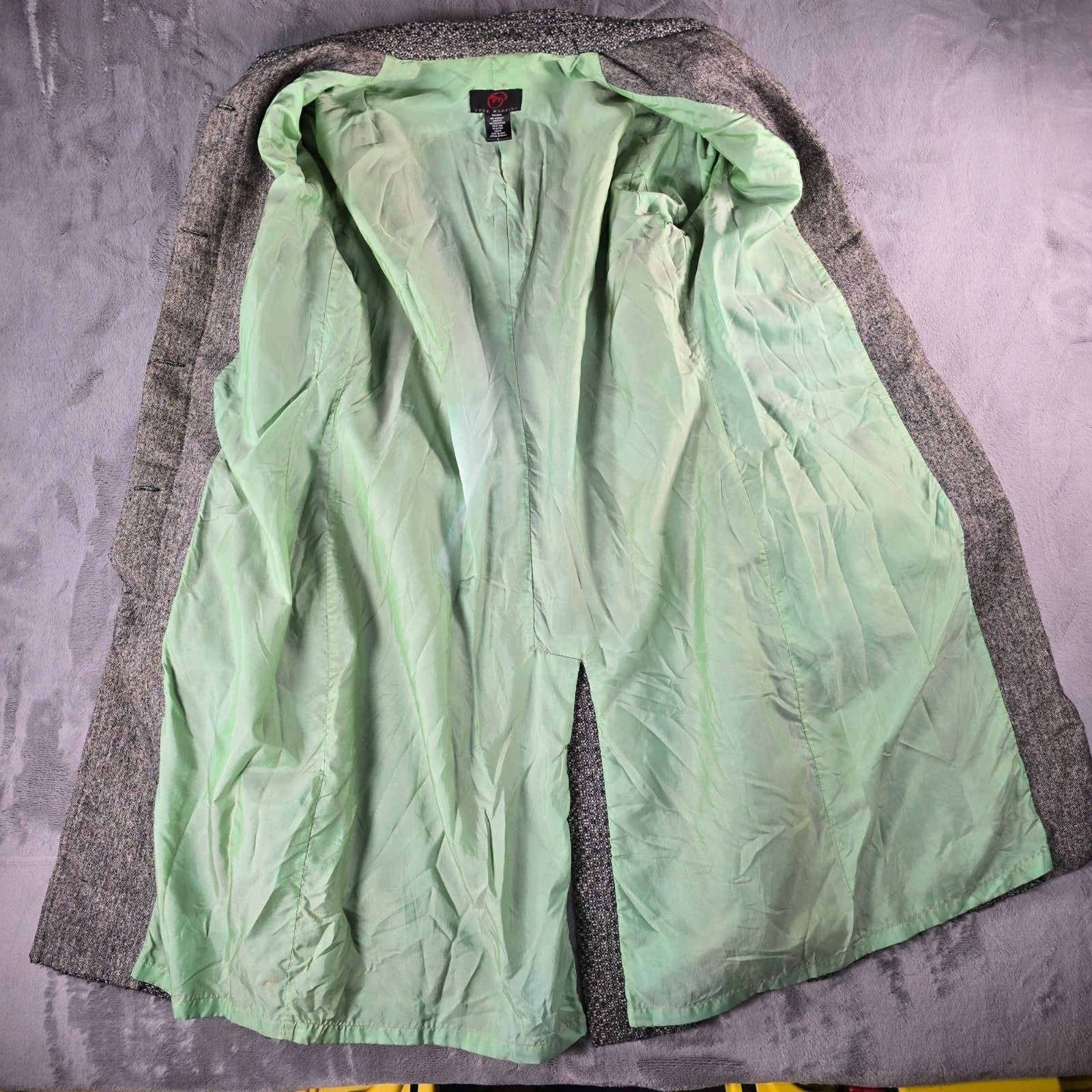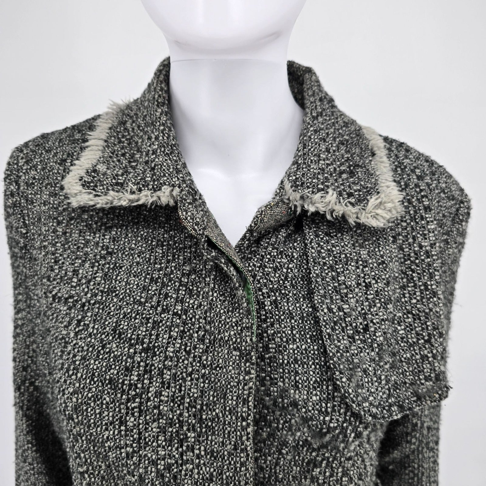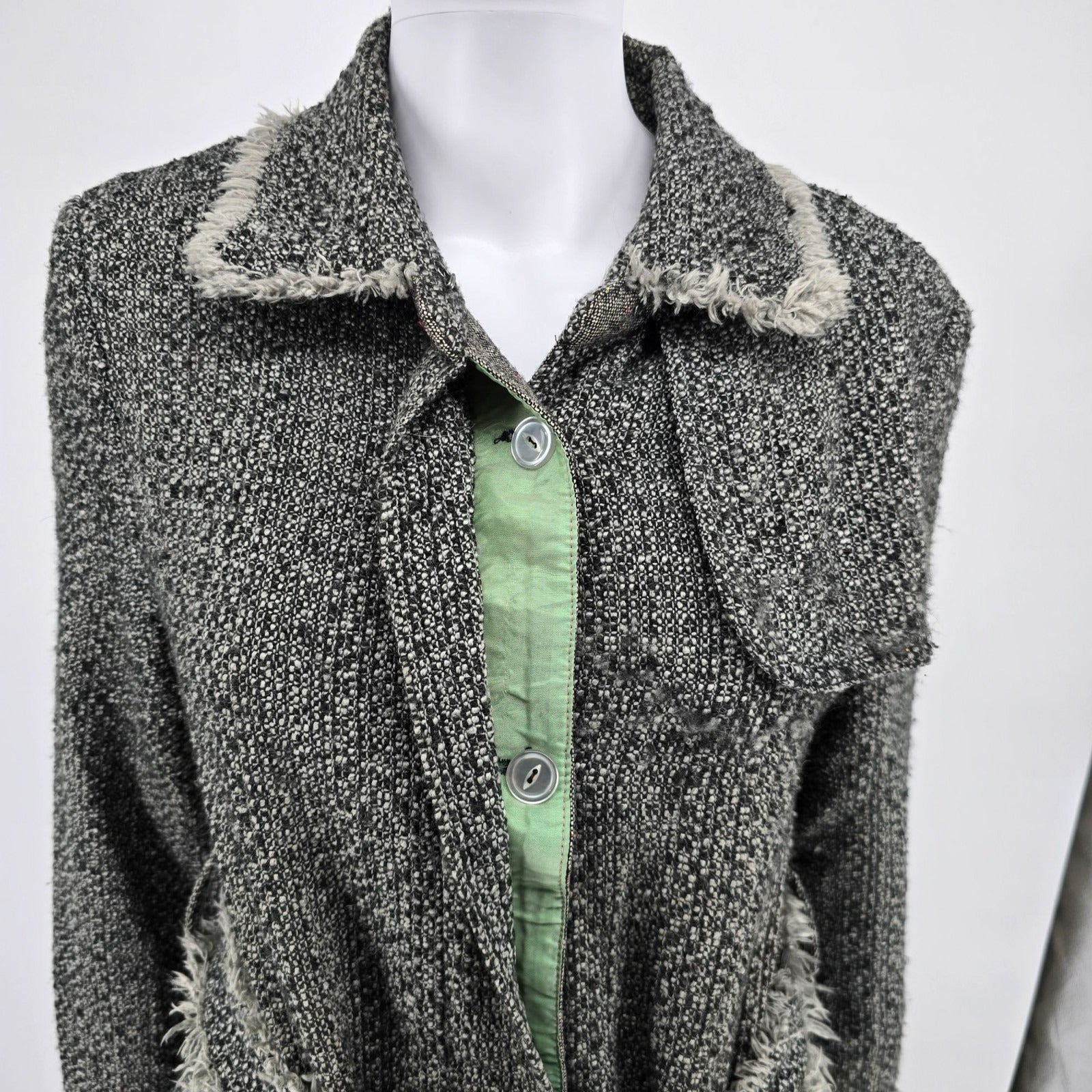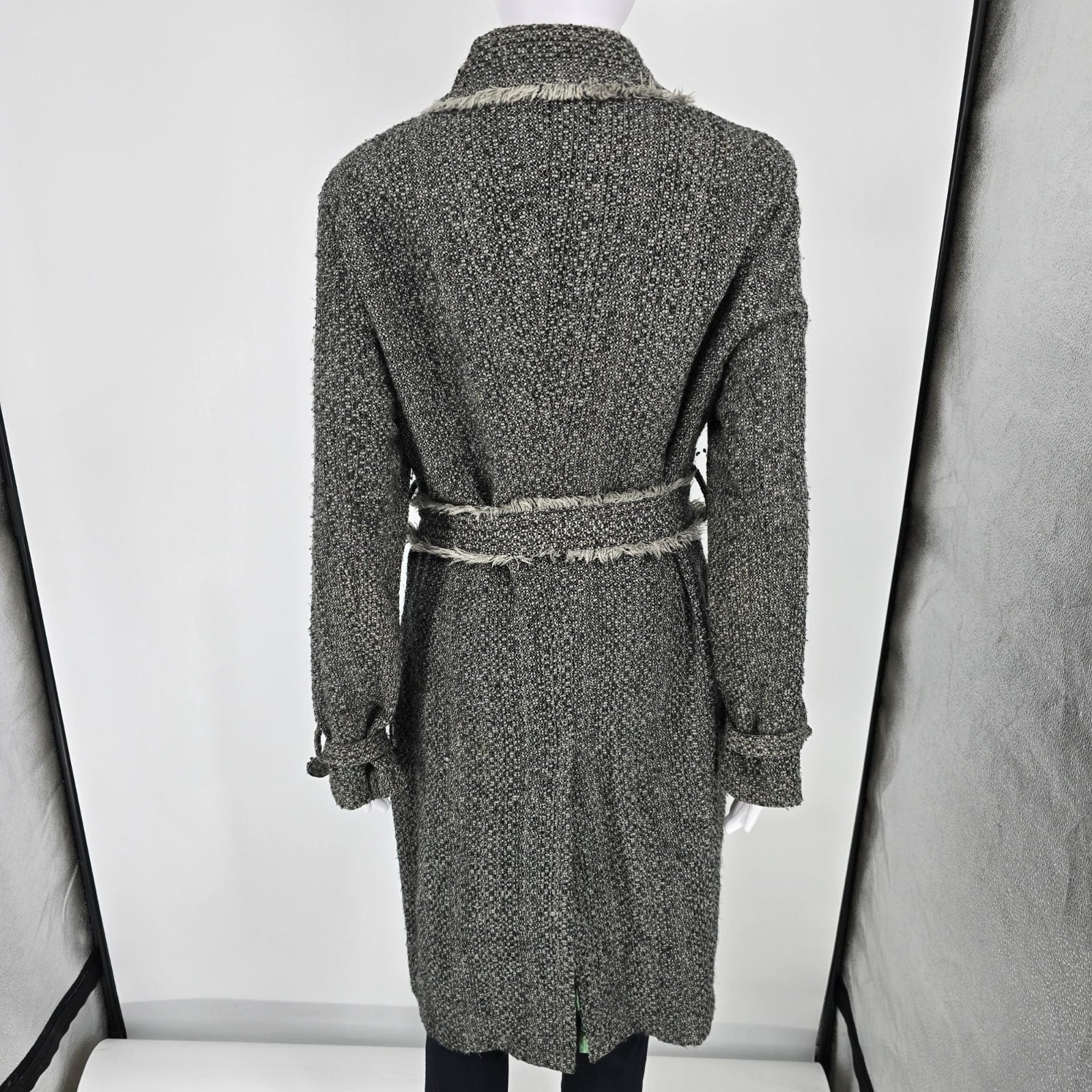 Vintage Y2K True Meaning Womens Boho Raw Edge Bouclé Belted Gray Long Coat (L)