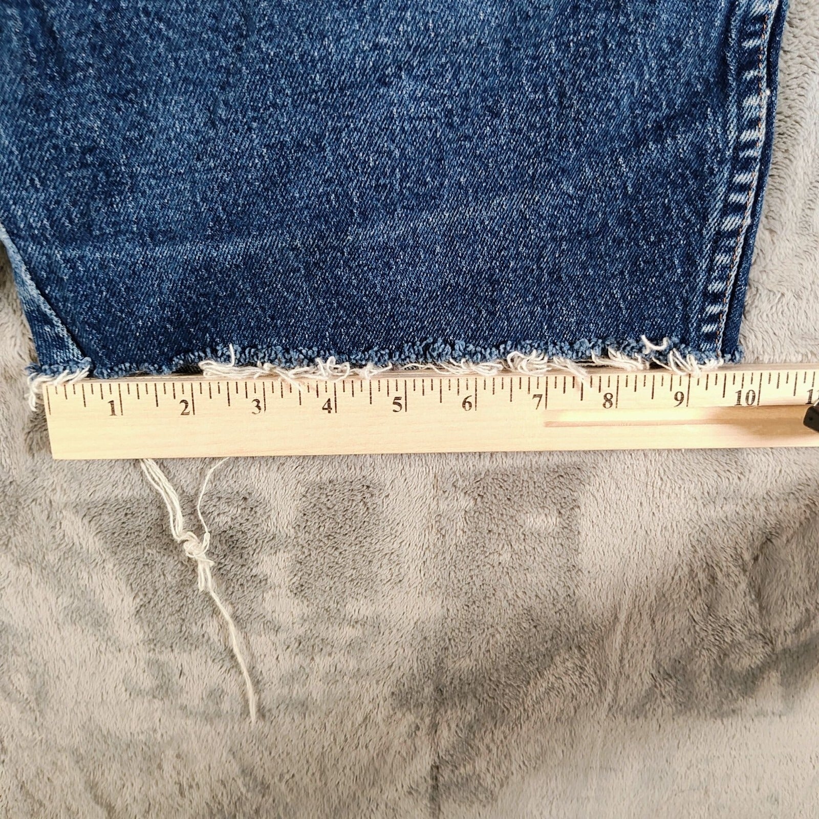 Condition: Good condition overall. DIY cut offs with frayed hems. Main tags missing (only fabric tag left). Light to moderate wear throughout. See photos.