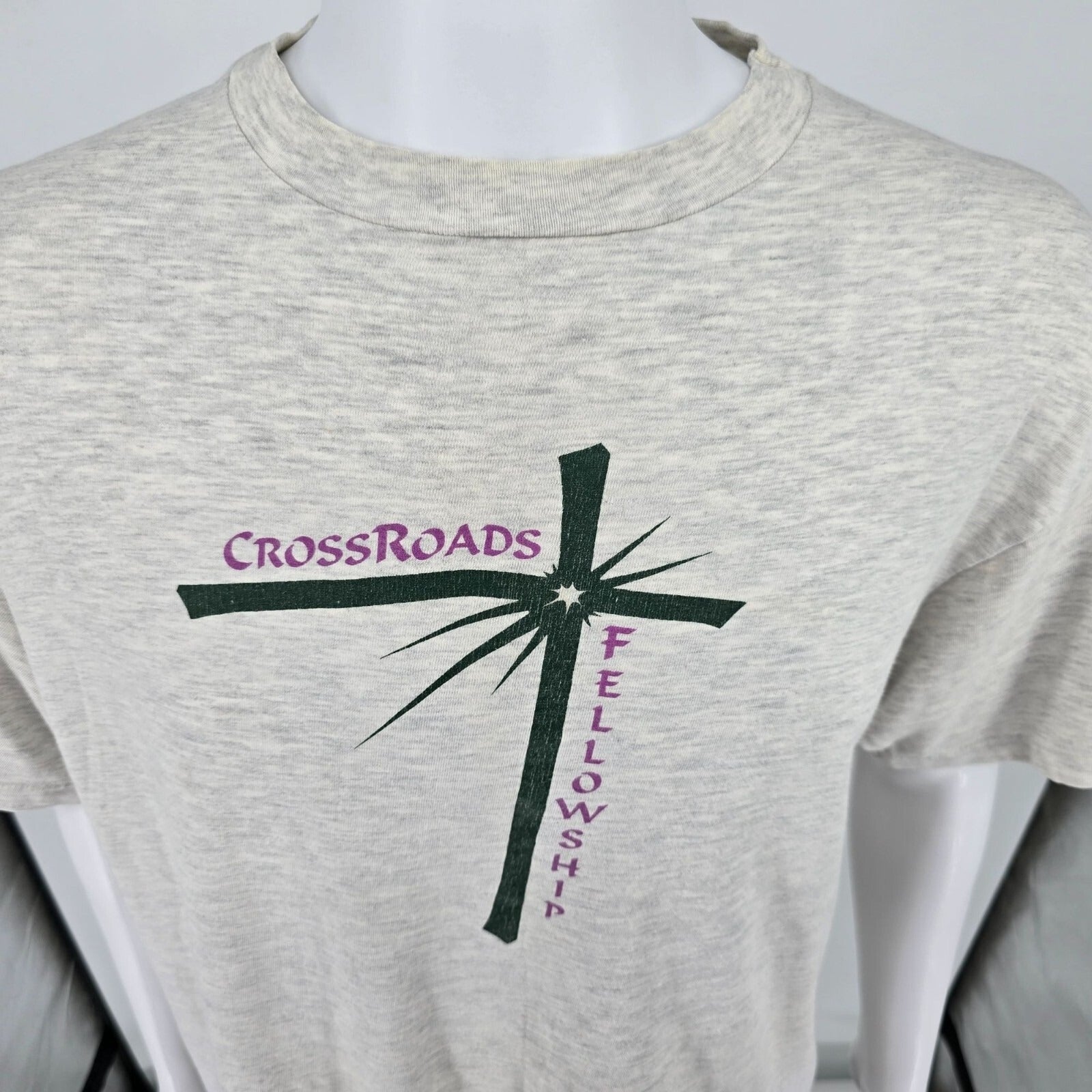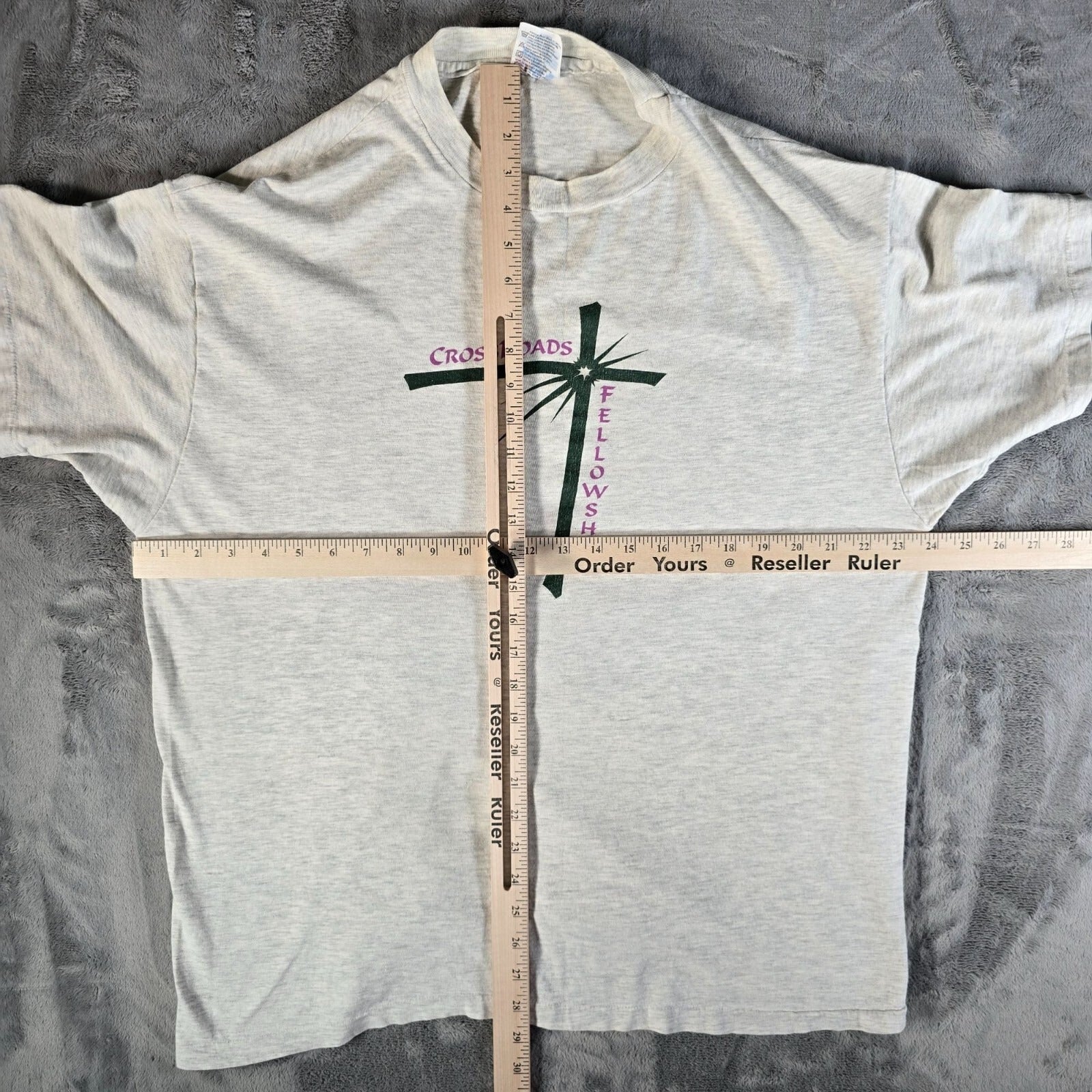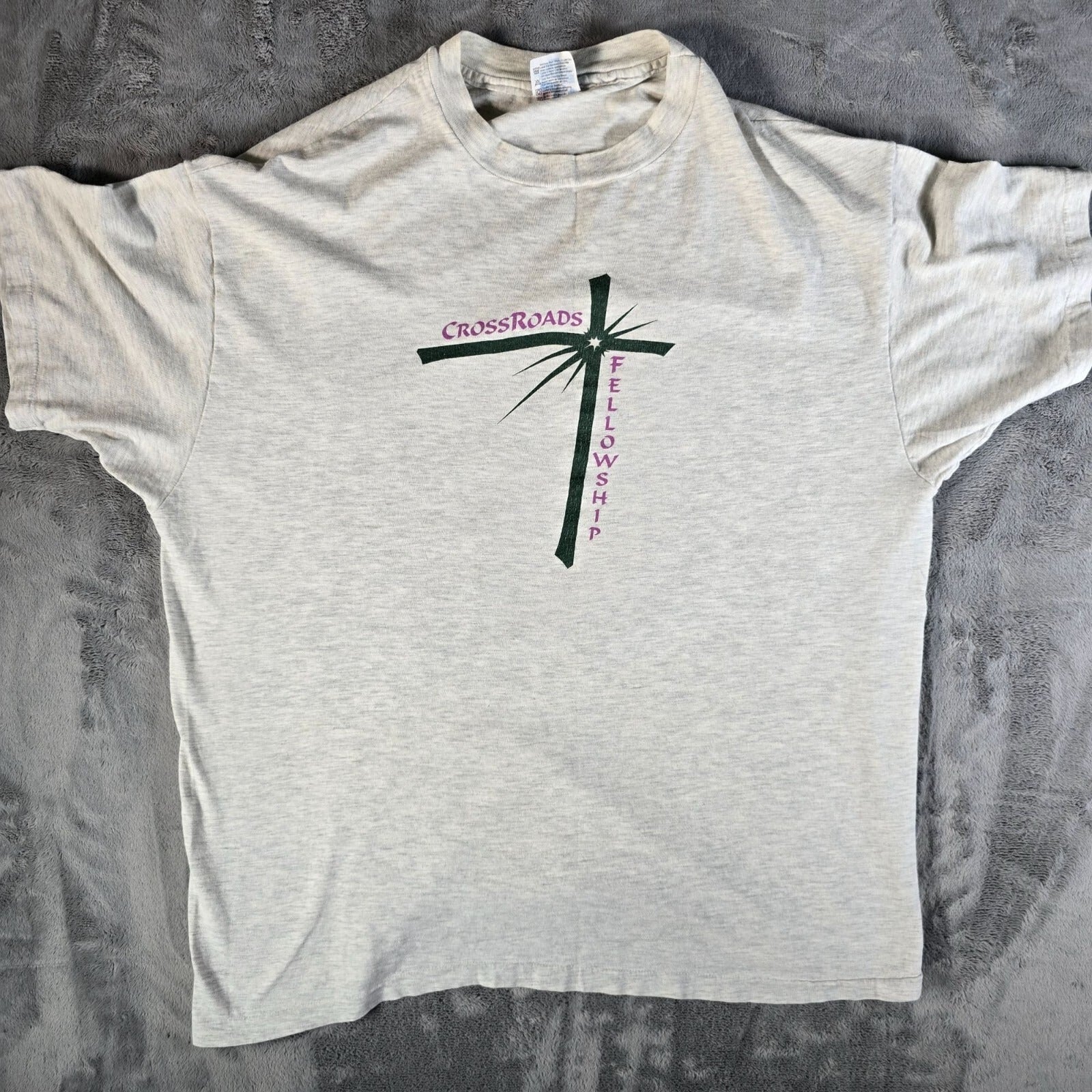 Yellowed Vintage 1990s Hanes Crossroads Fellowship Jeremiah 6:23 T-Shirt (XL)